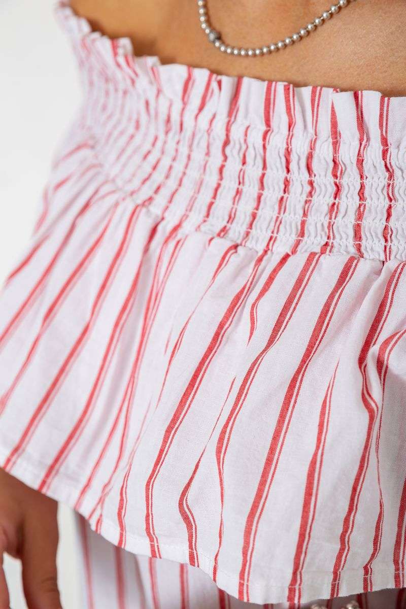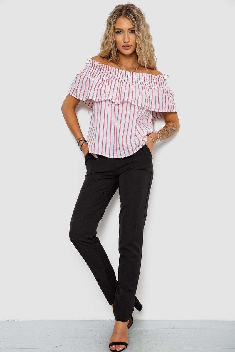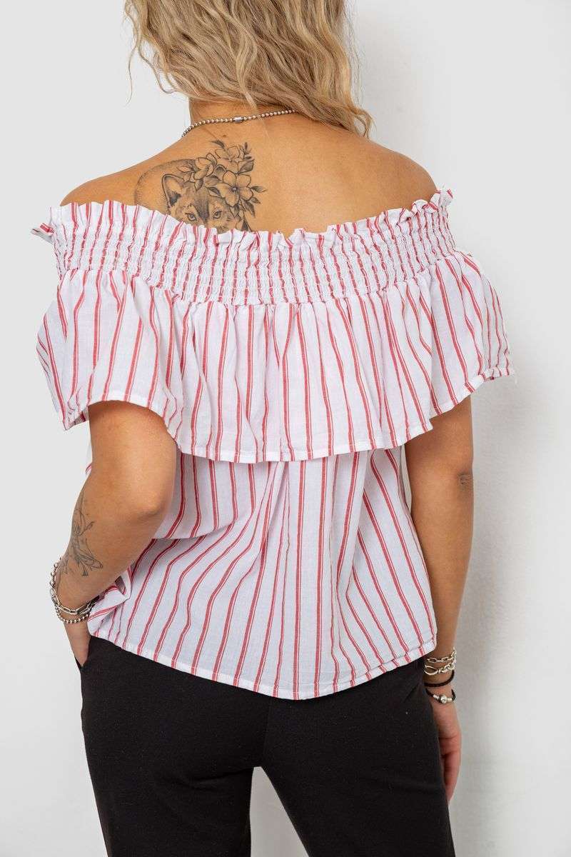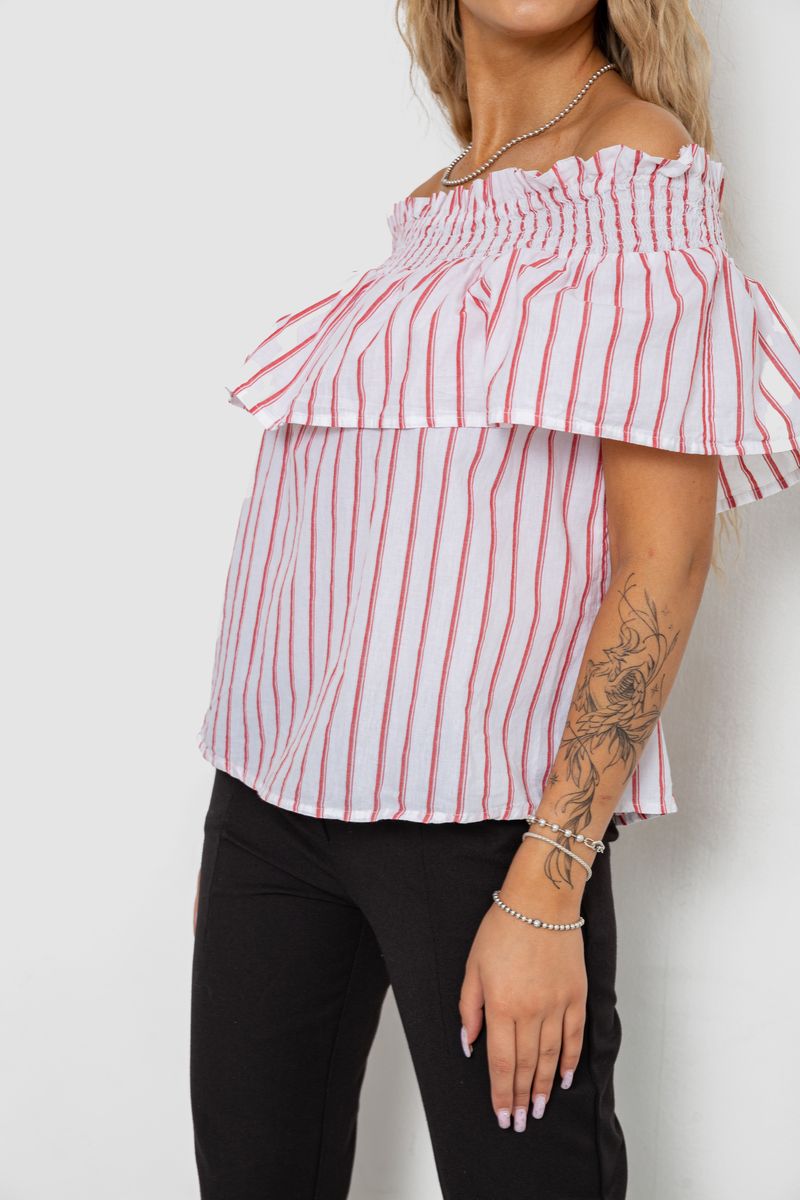 Блуза в полоску, цвет бело-красный, 244R302-1