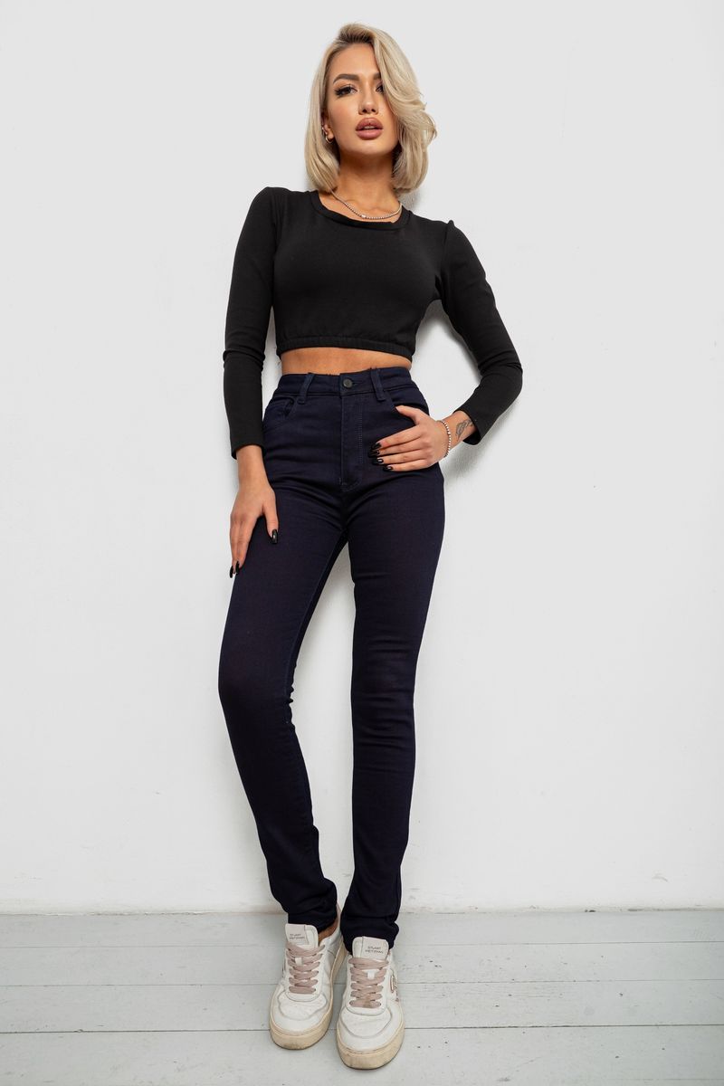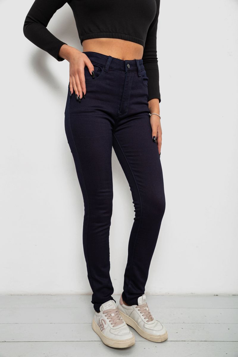 Джинсы женские однотонные на флисе, цвет темно-синий, 244RS021