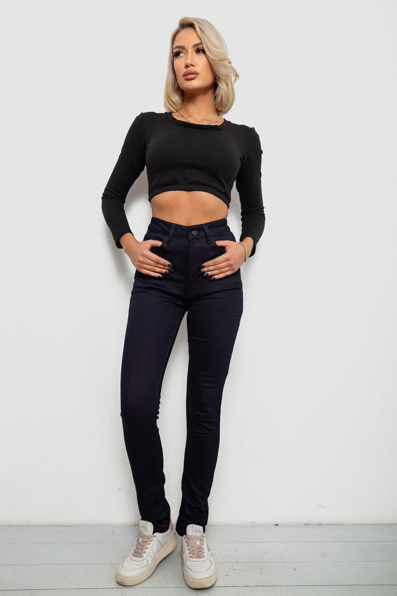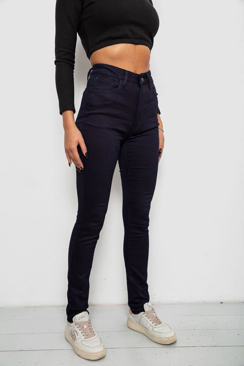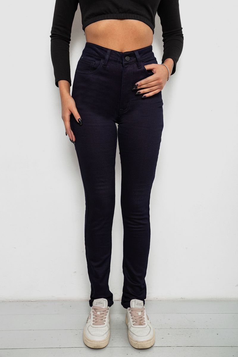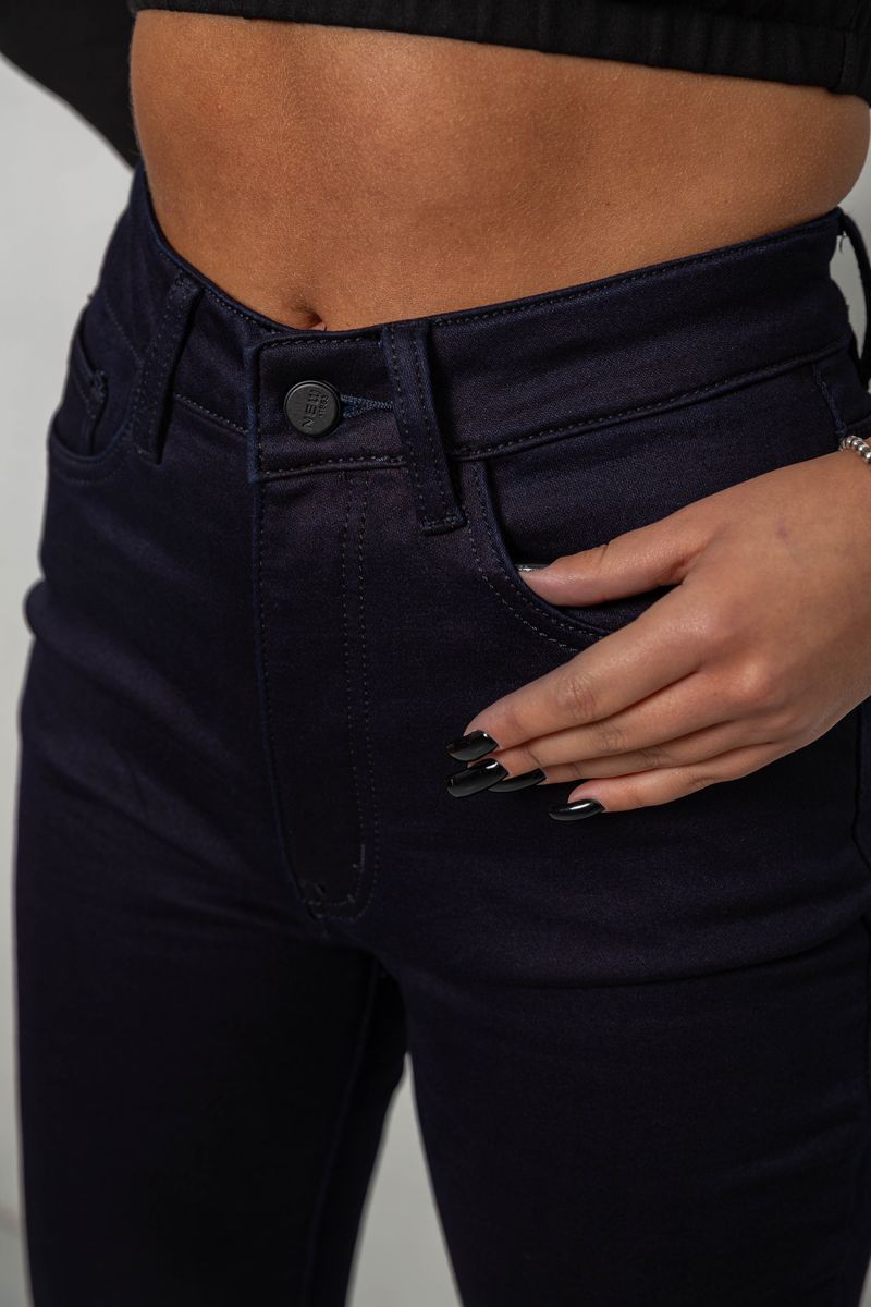 Джинсы женские однотонные на флисе, цвет темно-синий, 244RS026
