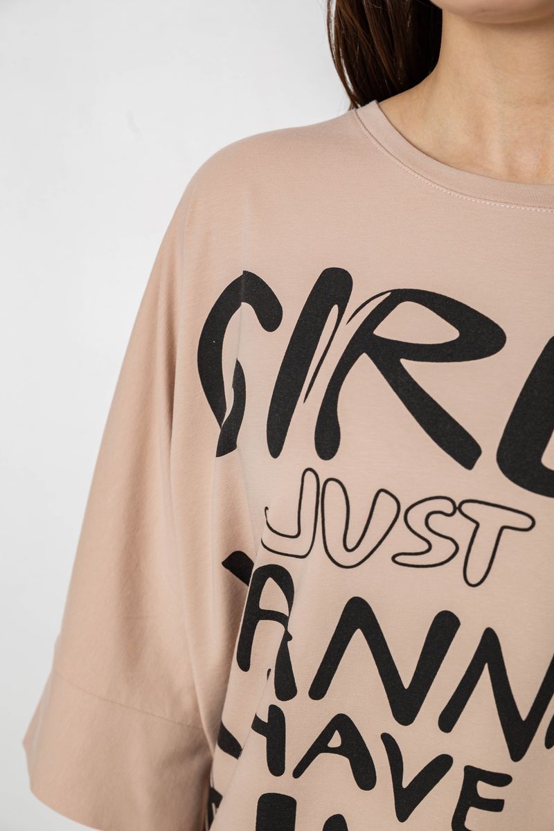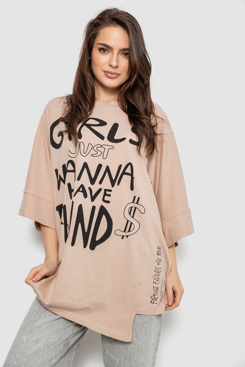 Футболка женская с принтом, цвет бежевый, 244R4017