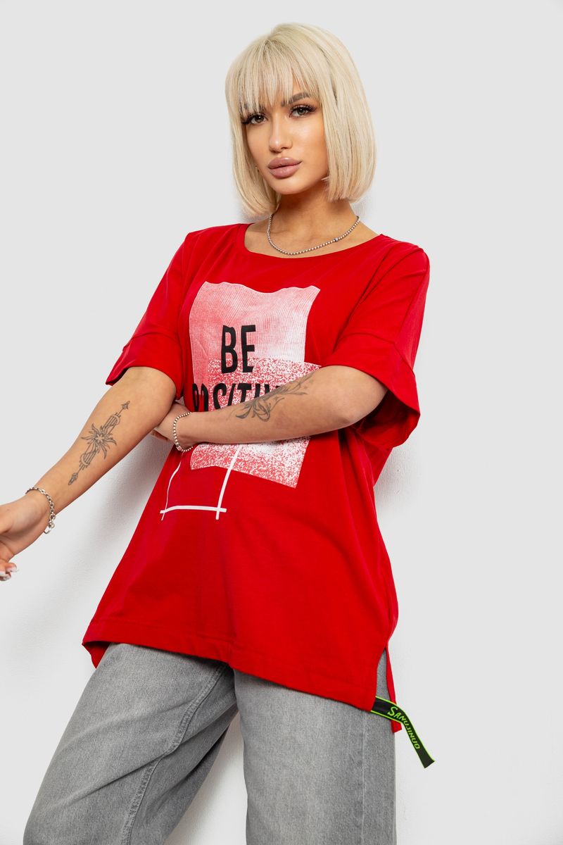 Футболка женская с принтом, цвет красный, 244R4011