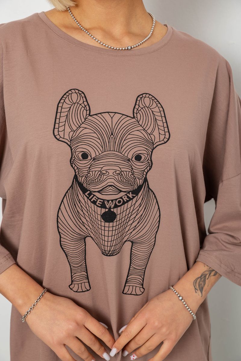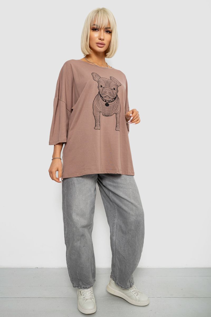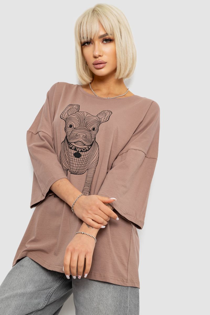 Футболка женская с принтом, цвет мокко, 244R3008