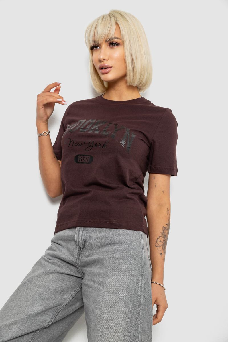 Футболка женская с принтом, цвет шоколадный, 241R137