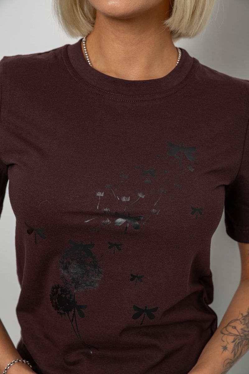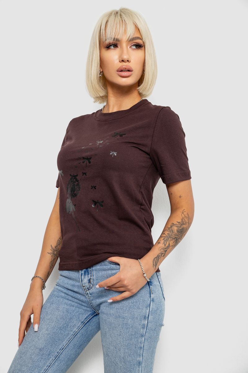 Футболка женская с принтом, цвет шоколадный, 241R1828