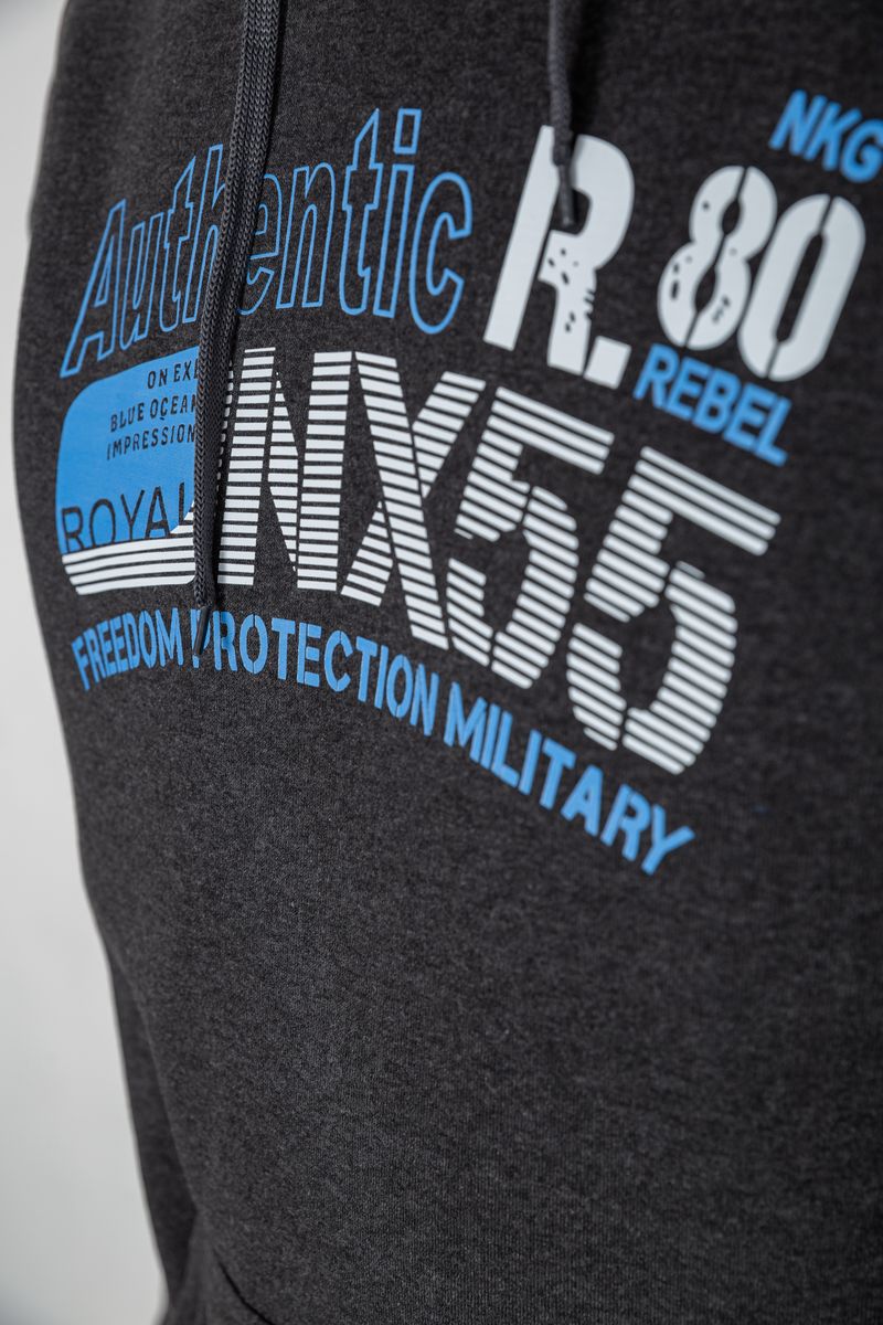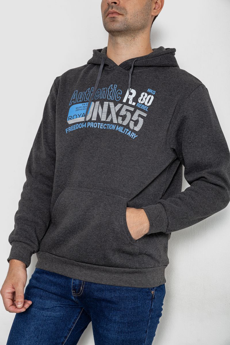 Худи мужской на флисе с капюшоном, цвет темно-серый, 244R2196