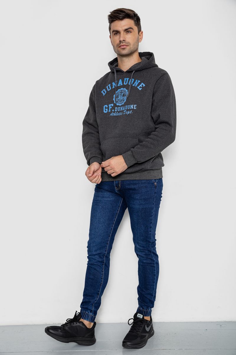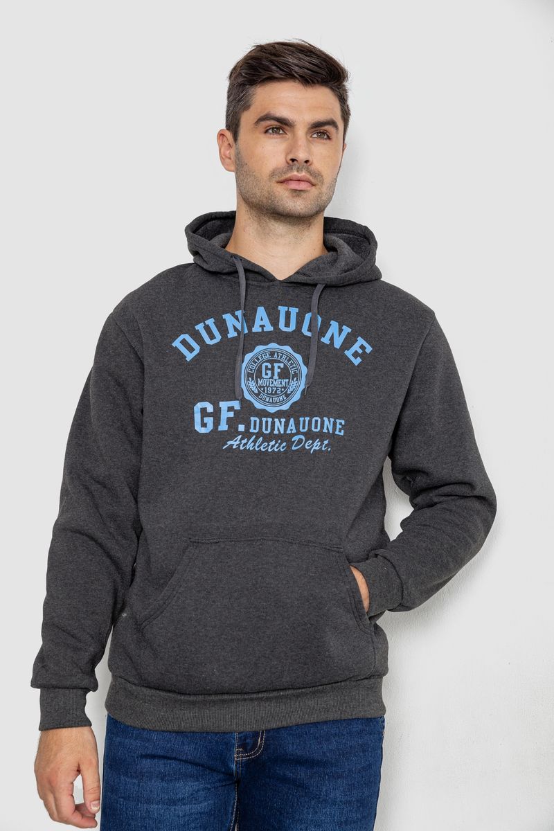 Худи мужской на флисе с капюшоном, цвет темно-серый, 244R2197