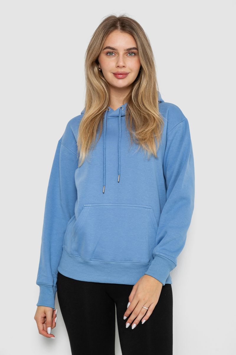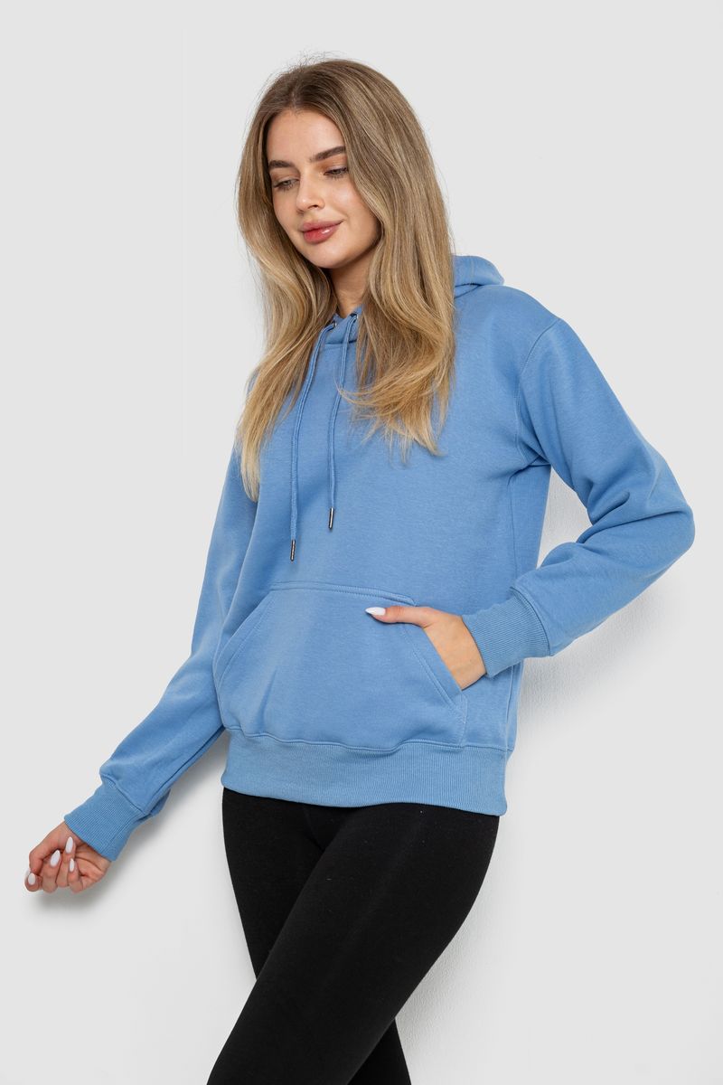 Худи женский на флисе, цвет джинс, 242R053