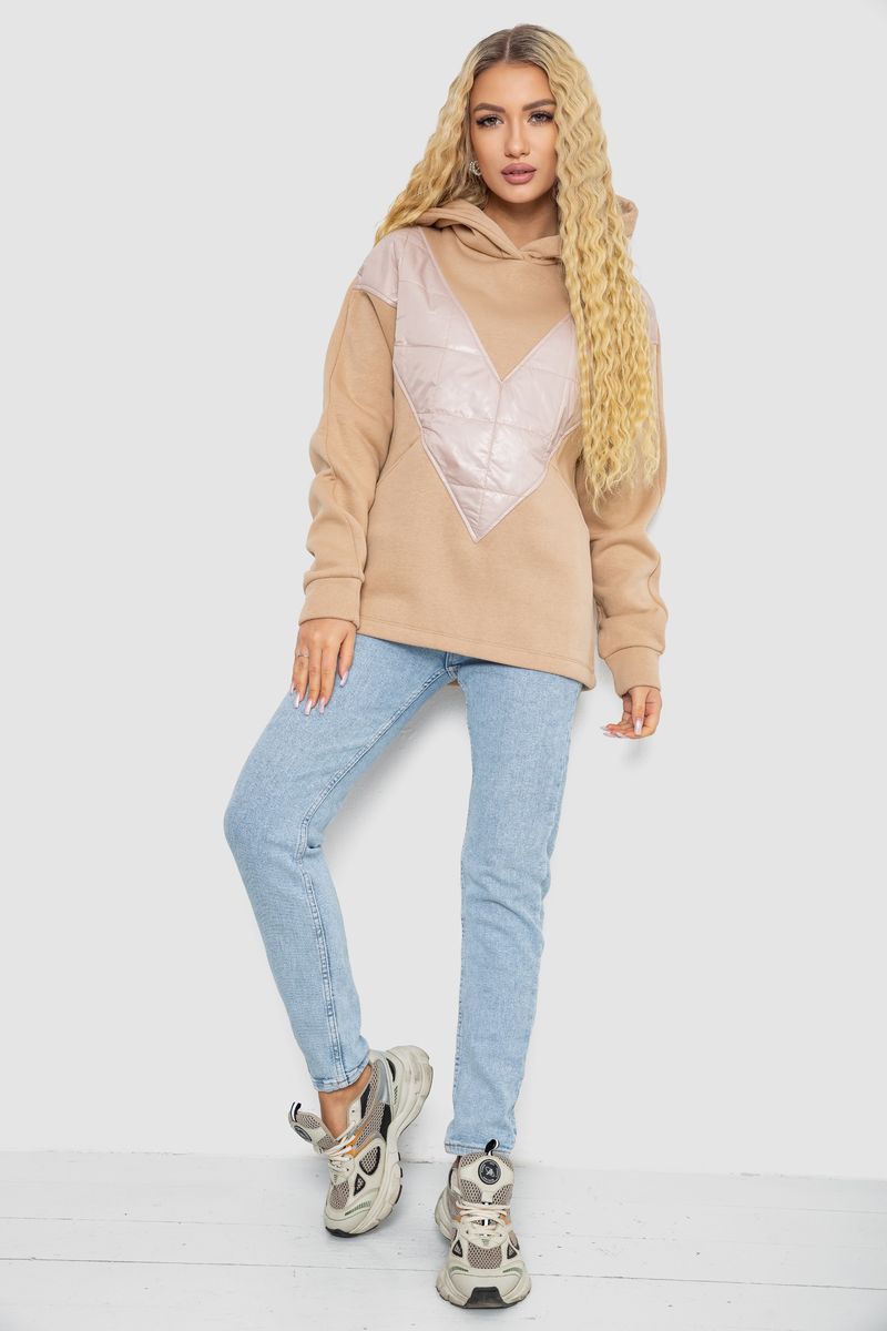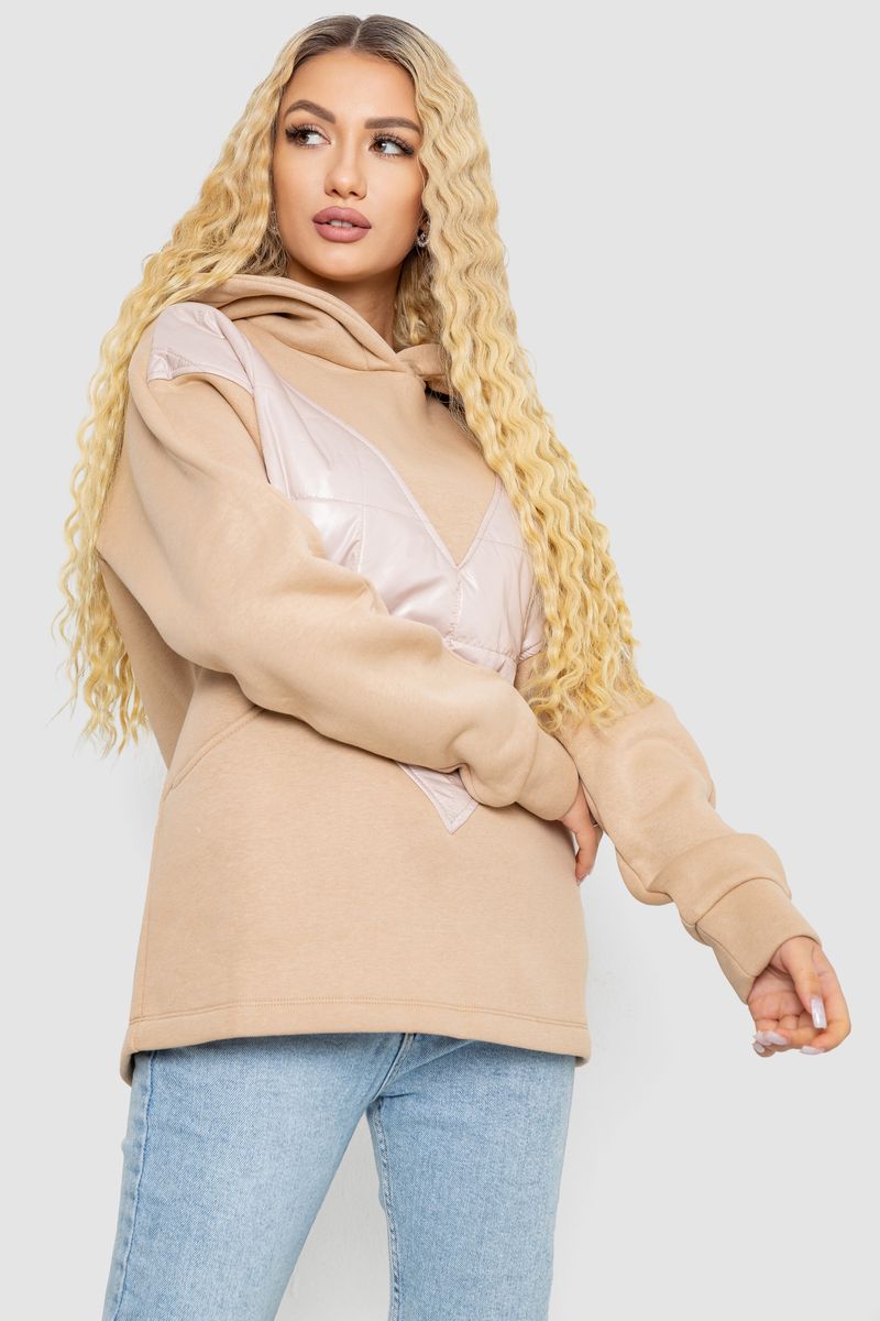 Худи женский на флисе трехнитка, цвет бежевый, 102R7713