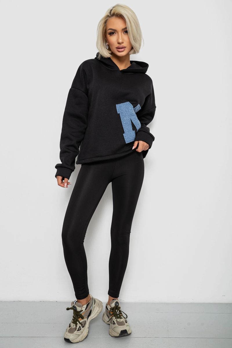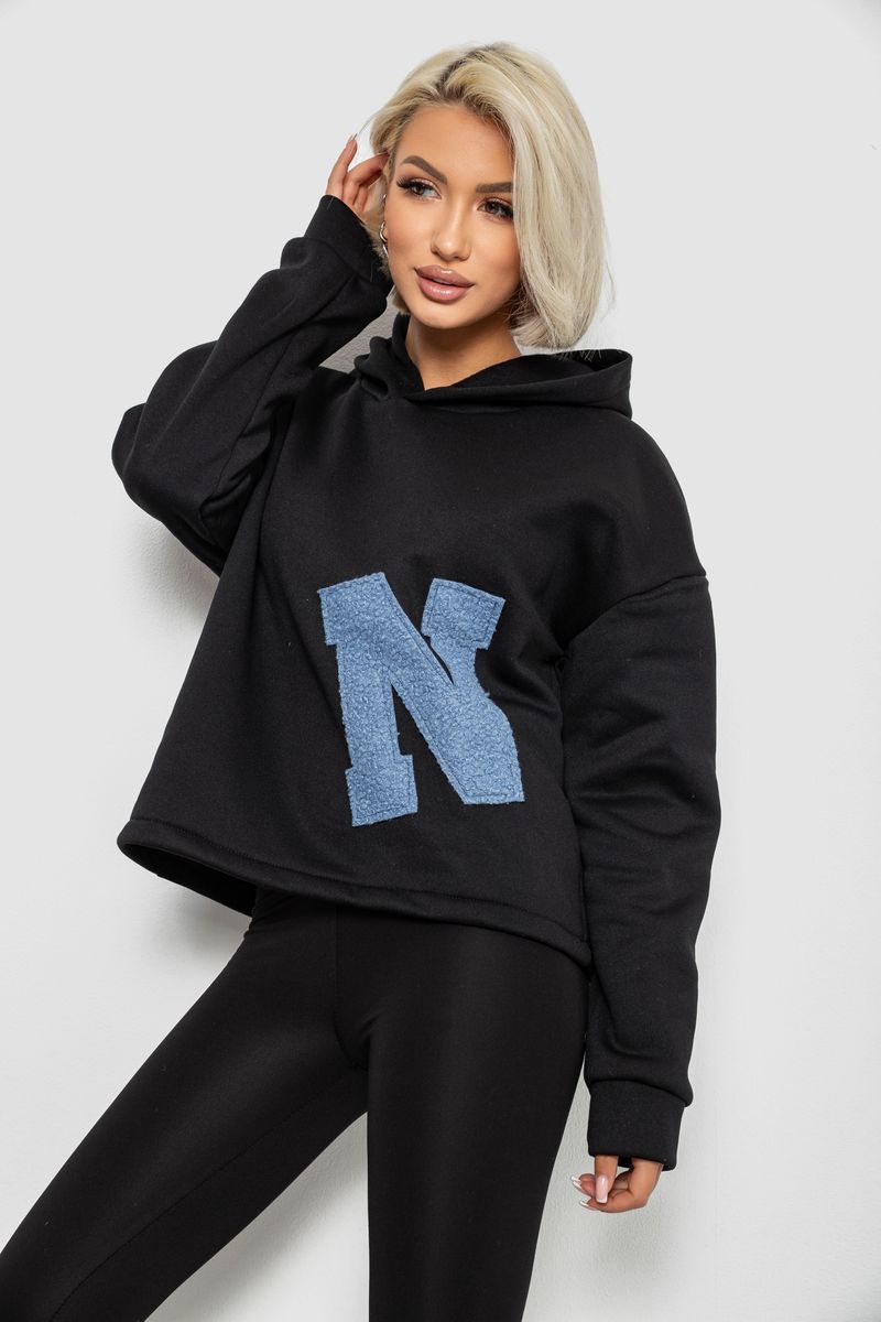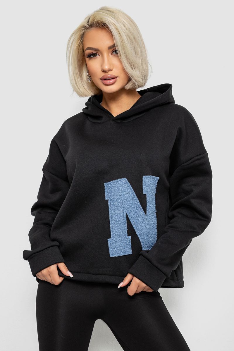 Худи женский с капюшоном на флисе, цвет черный, 257R335