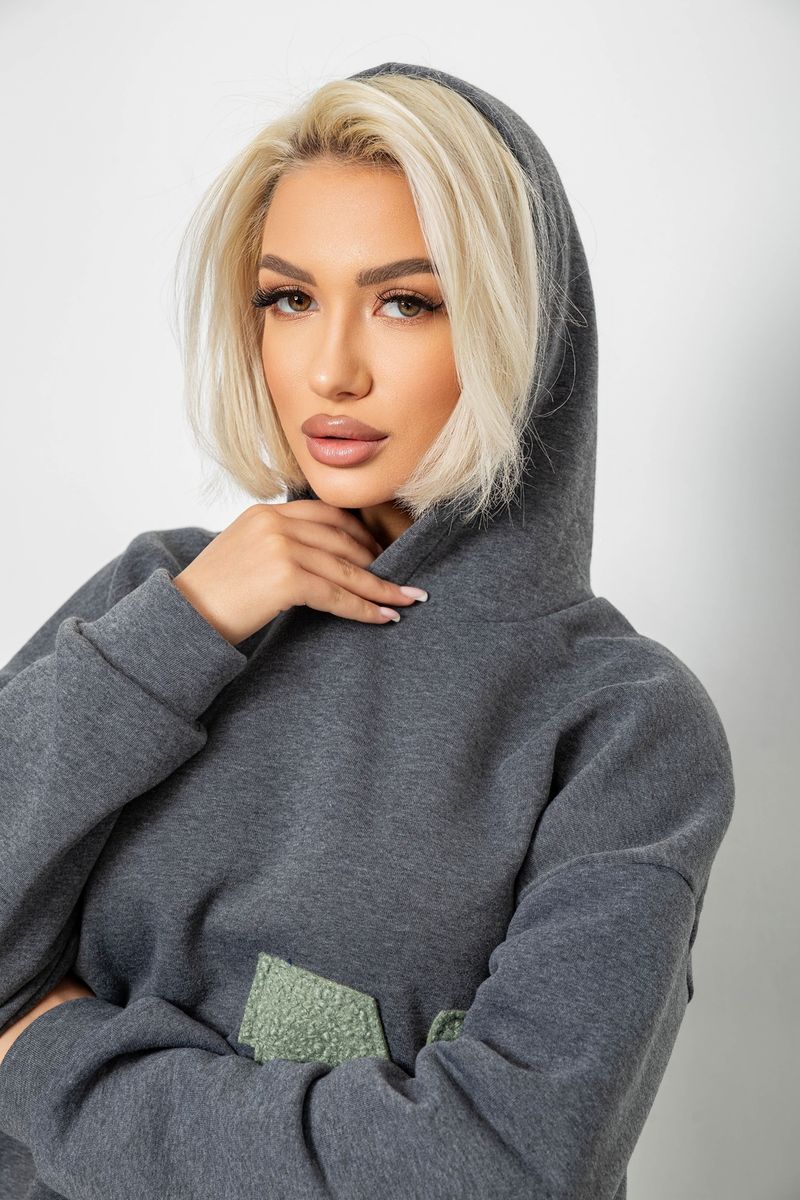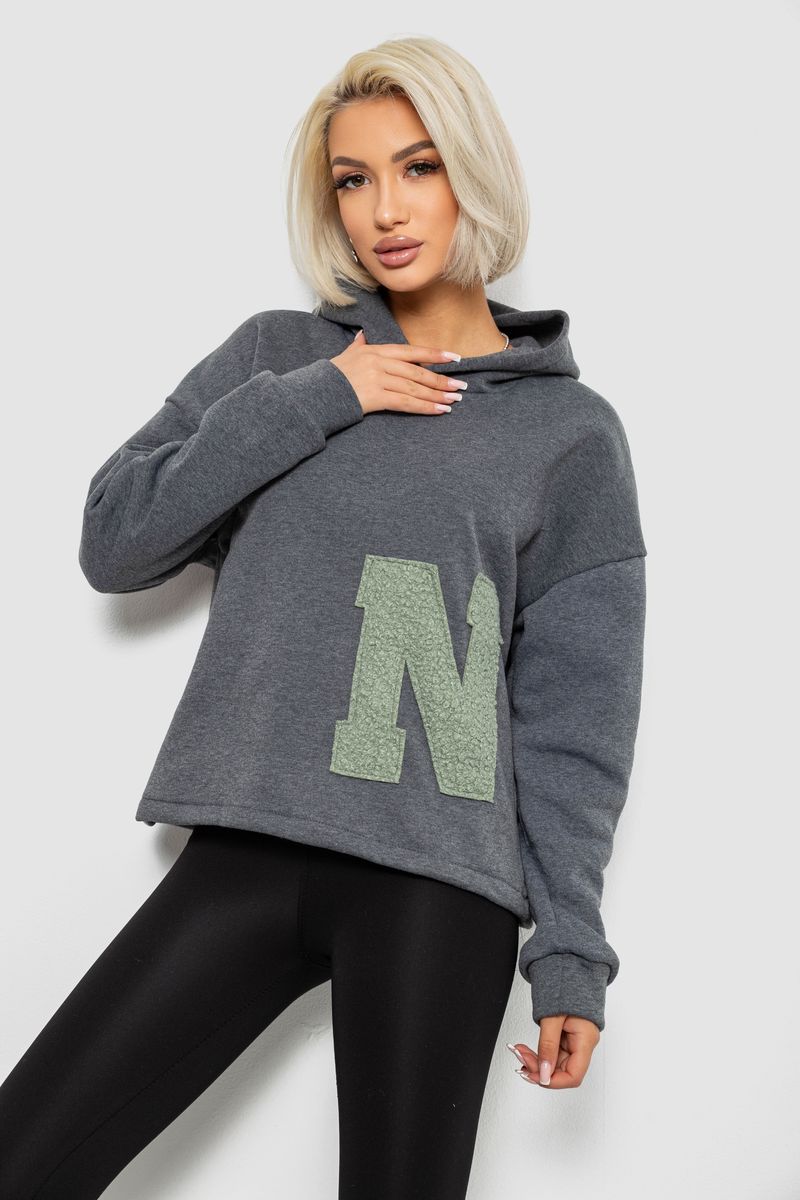Худи женский с капюшоном на флисе, цвет серый, 257R335