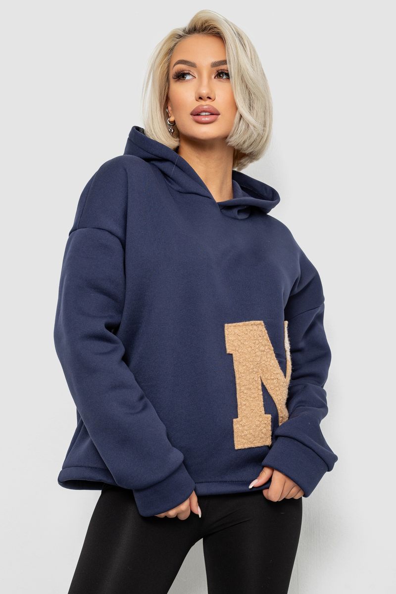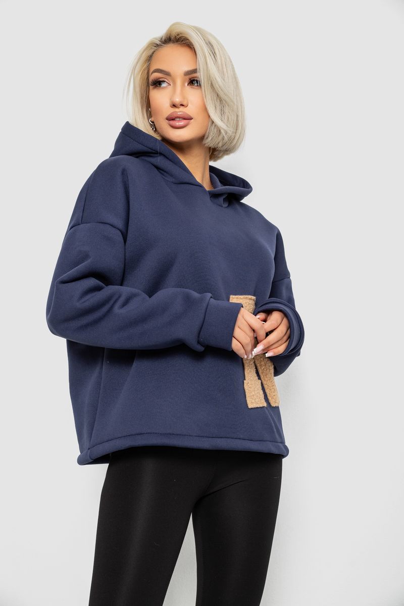 Худи женский с капюшоном на флисе, цвет синий, 257R335
