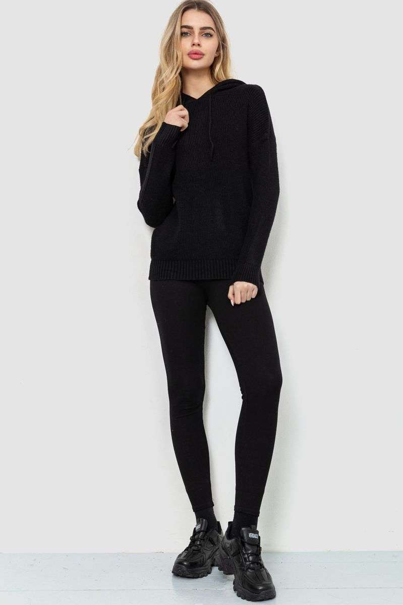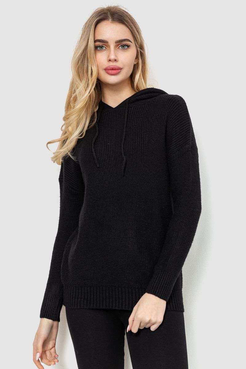 Кофта-батник женская с капюшоном, цвет черный, 244R2029