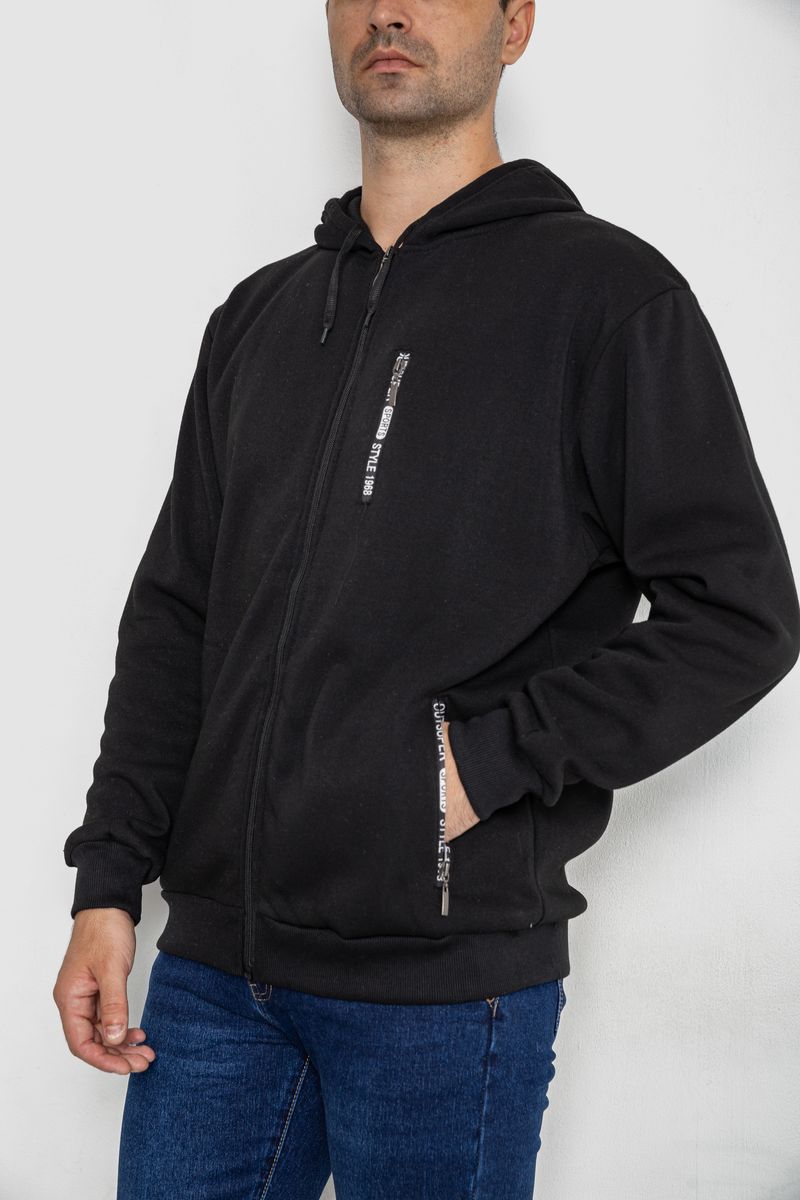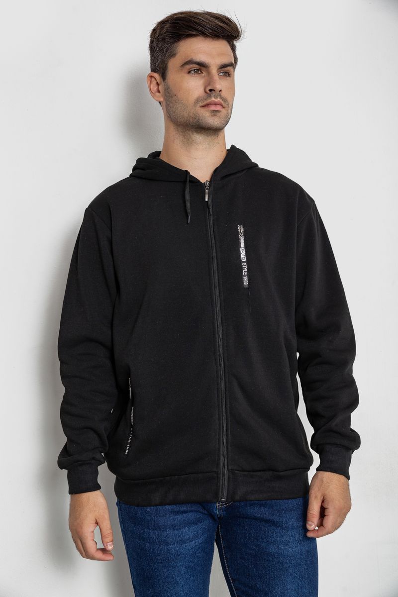 Кофта мужская на флисе с капюшоном, цвет черный, 244R2536