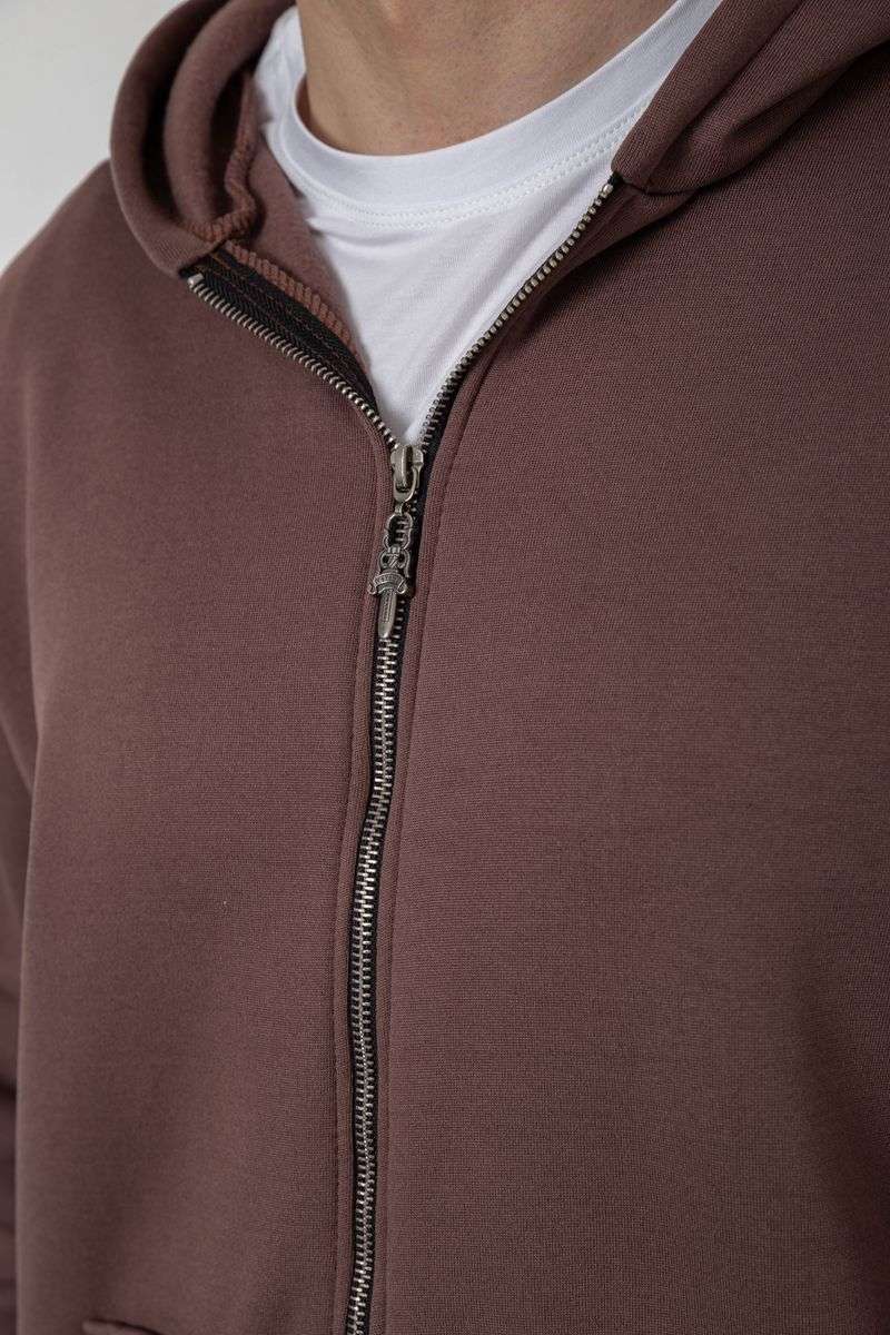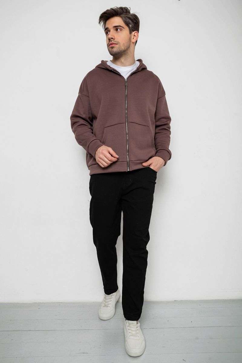 Кофта мужская на флисе с капюшоном, цвет мокко, 238R58698
