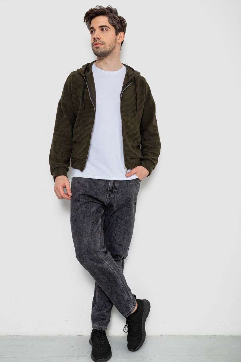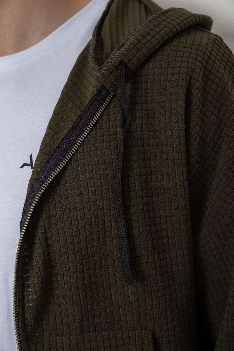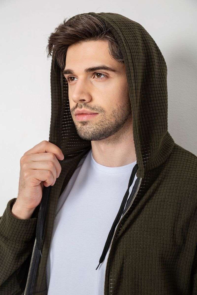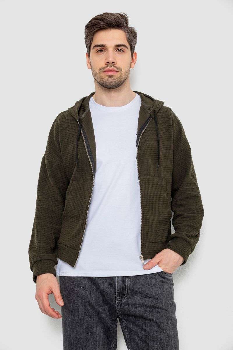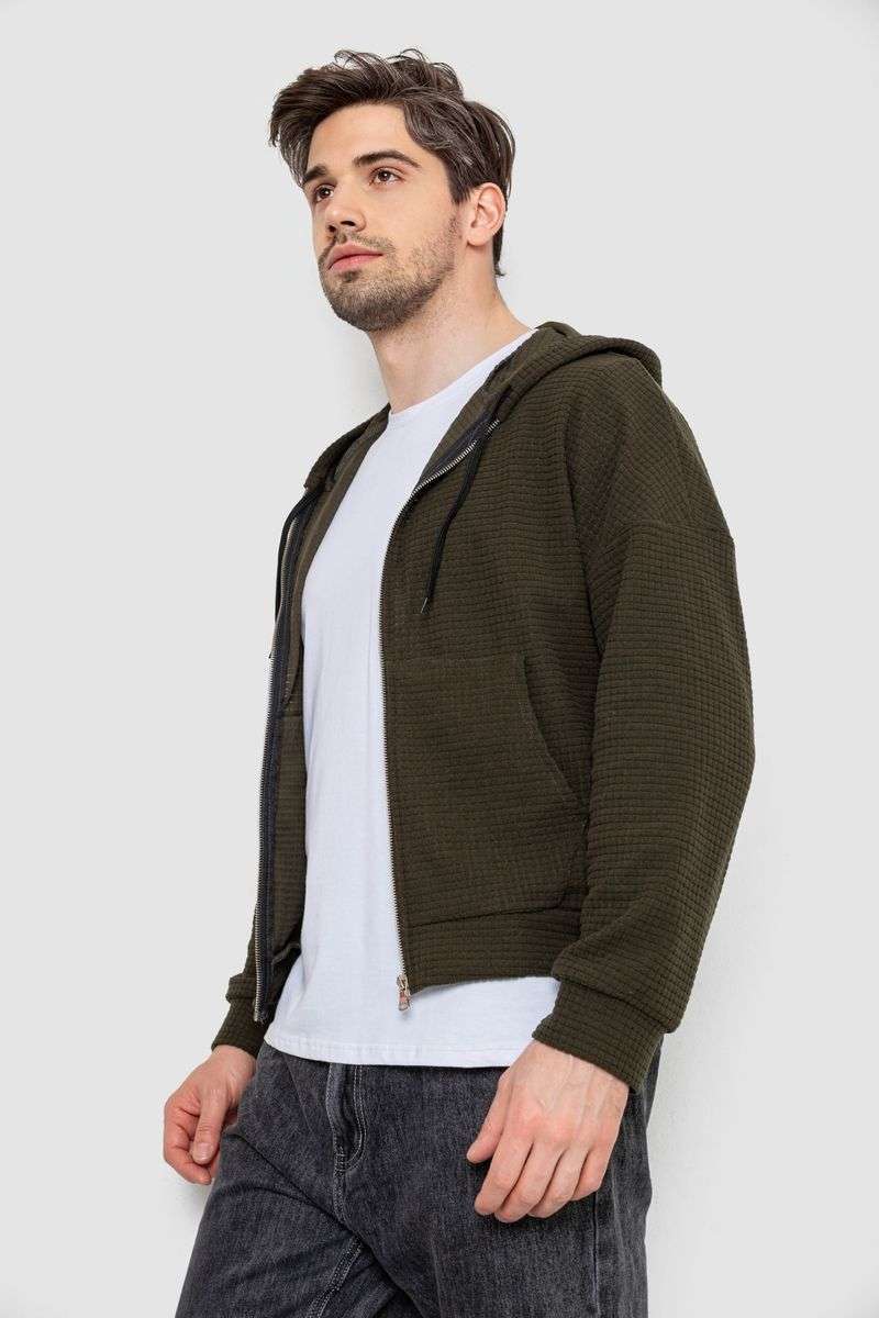 Кофта мужская на молнии с капюшоном, цвет хаки, 238R103-1