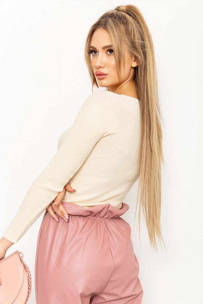 Кофта женская в рубчик, цвет кремовый, 131R122-1