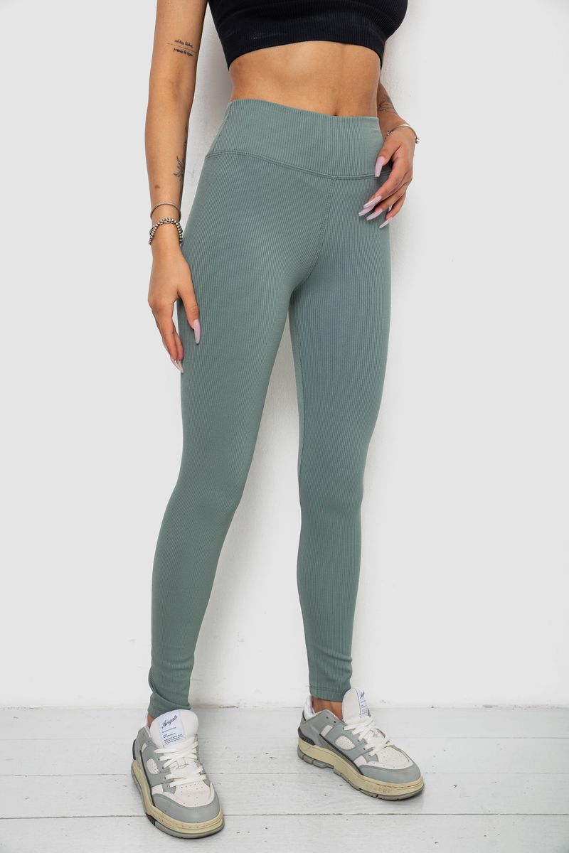 Лосины однотонные в рубчик утепленные на флисе, цвет оливковый, 238R605-1