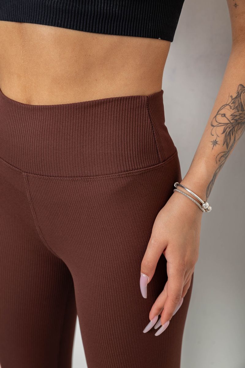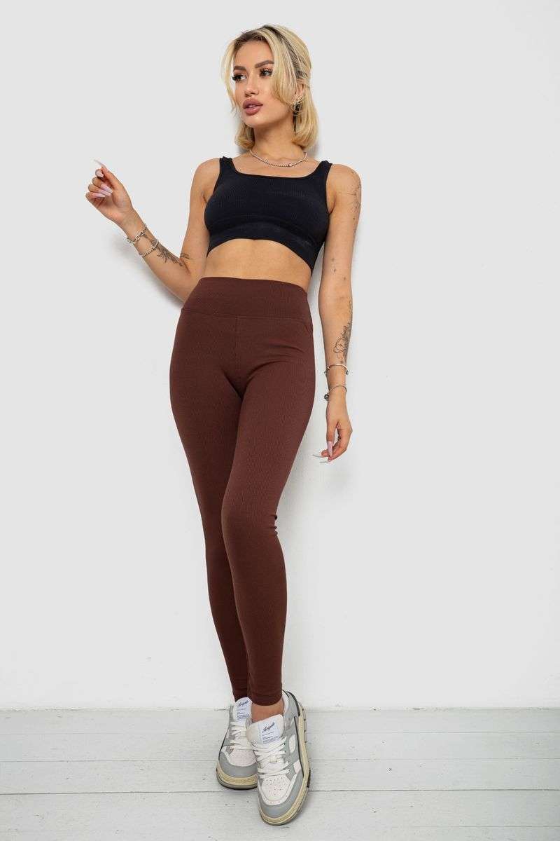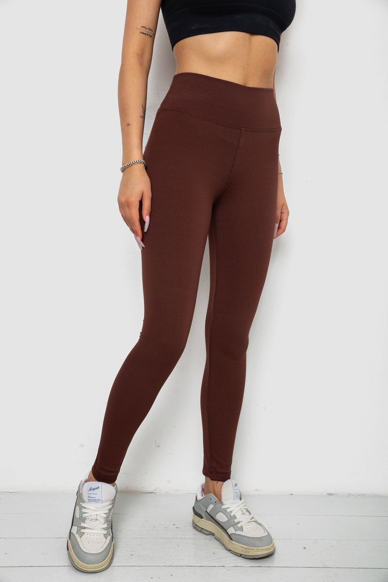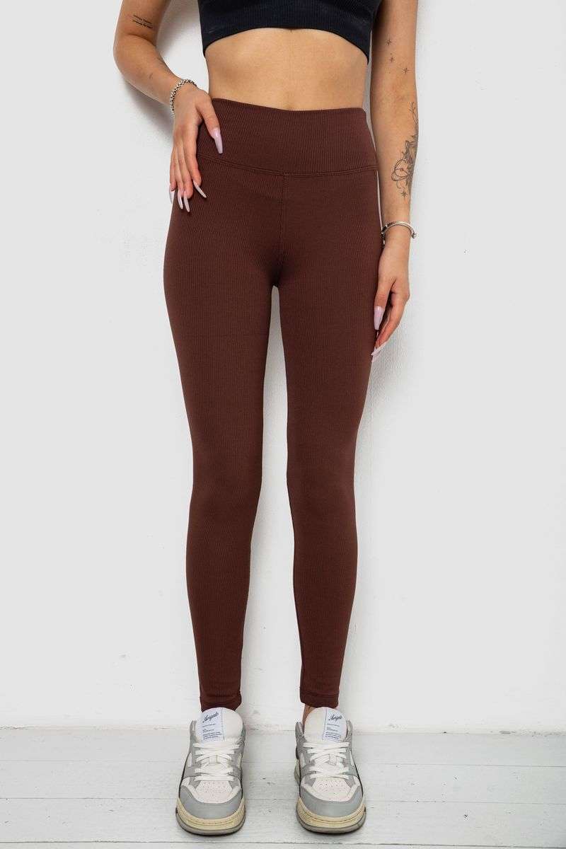 Лосины однотонные в рубчик утепленные на флисе, цвет шоколадный, 238R605