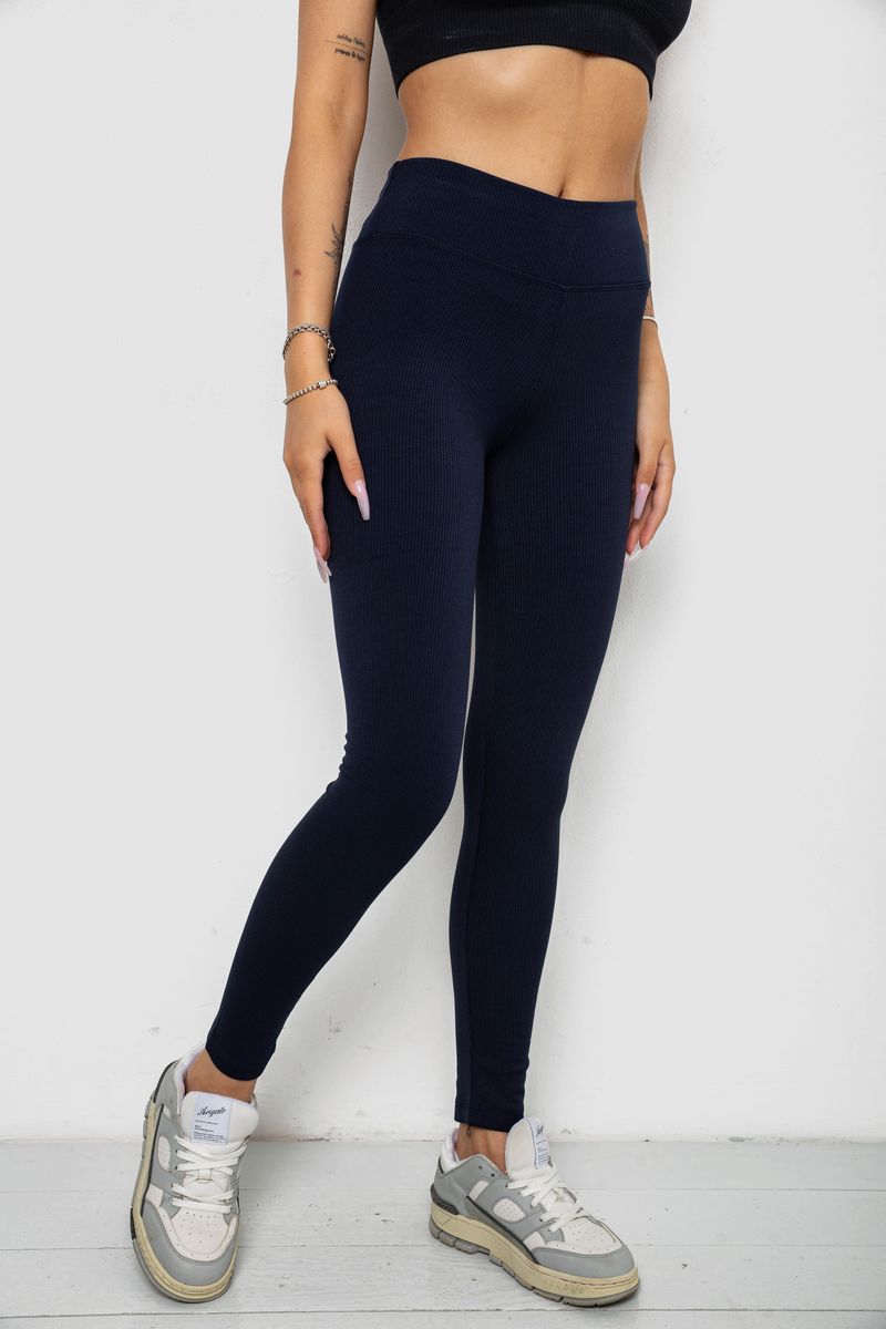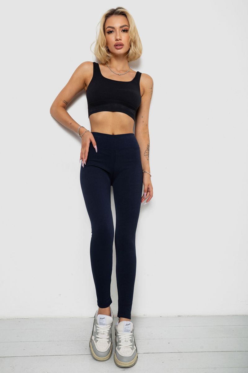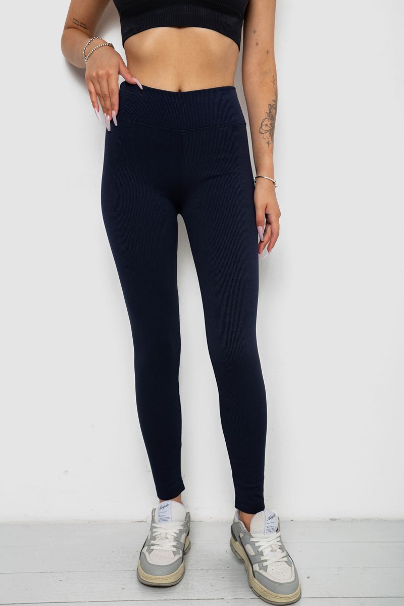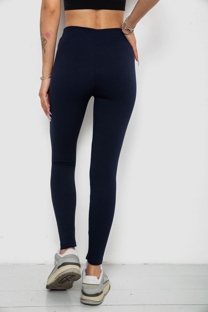 Лосины однотонные в рубчик утепленные на флисе, цвет синий, 238R605