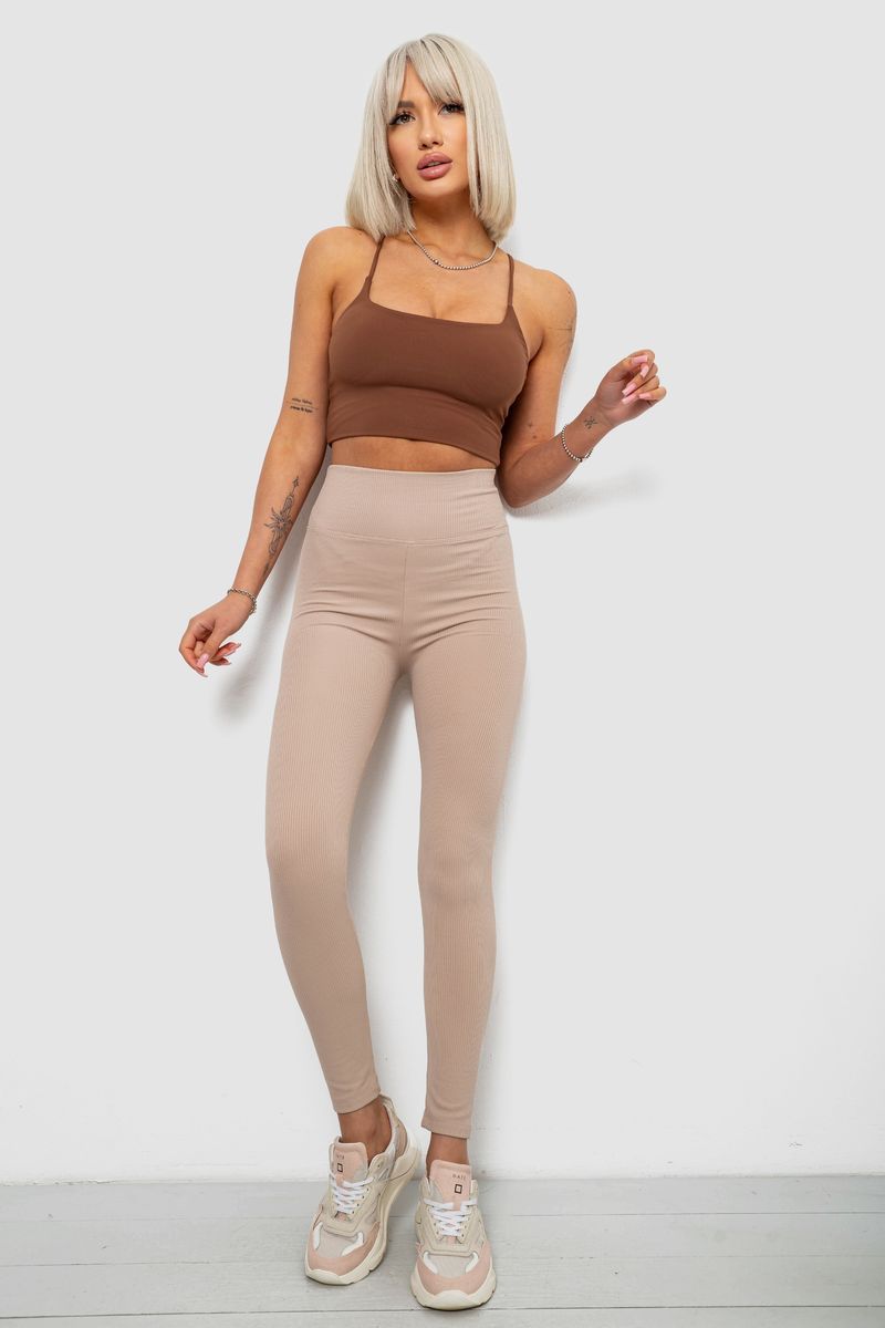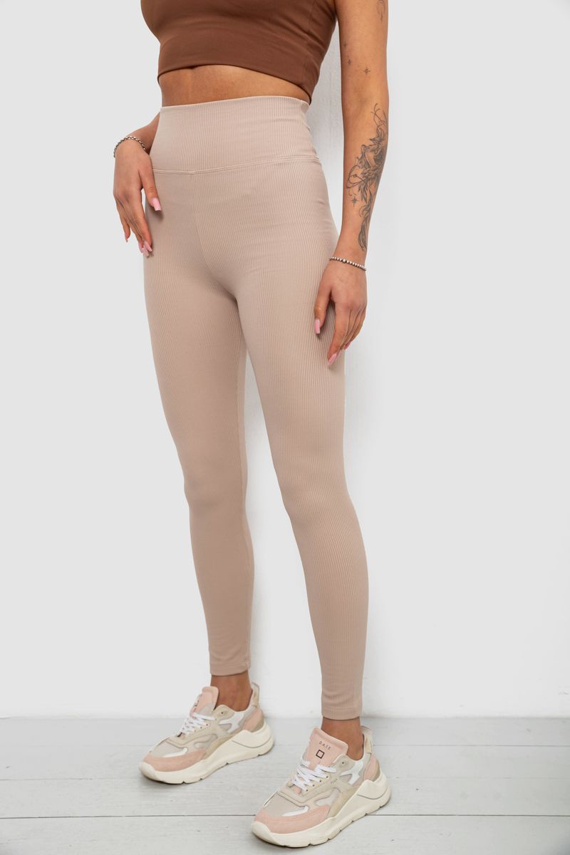 Лосины женские однотонные в рубчик, цвет бежевый, 214R0009