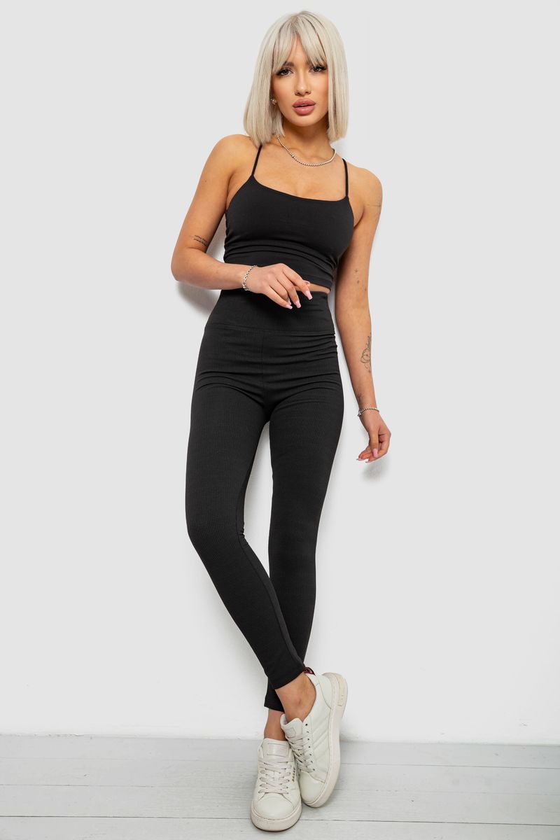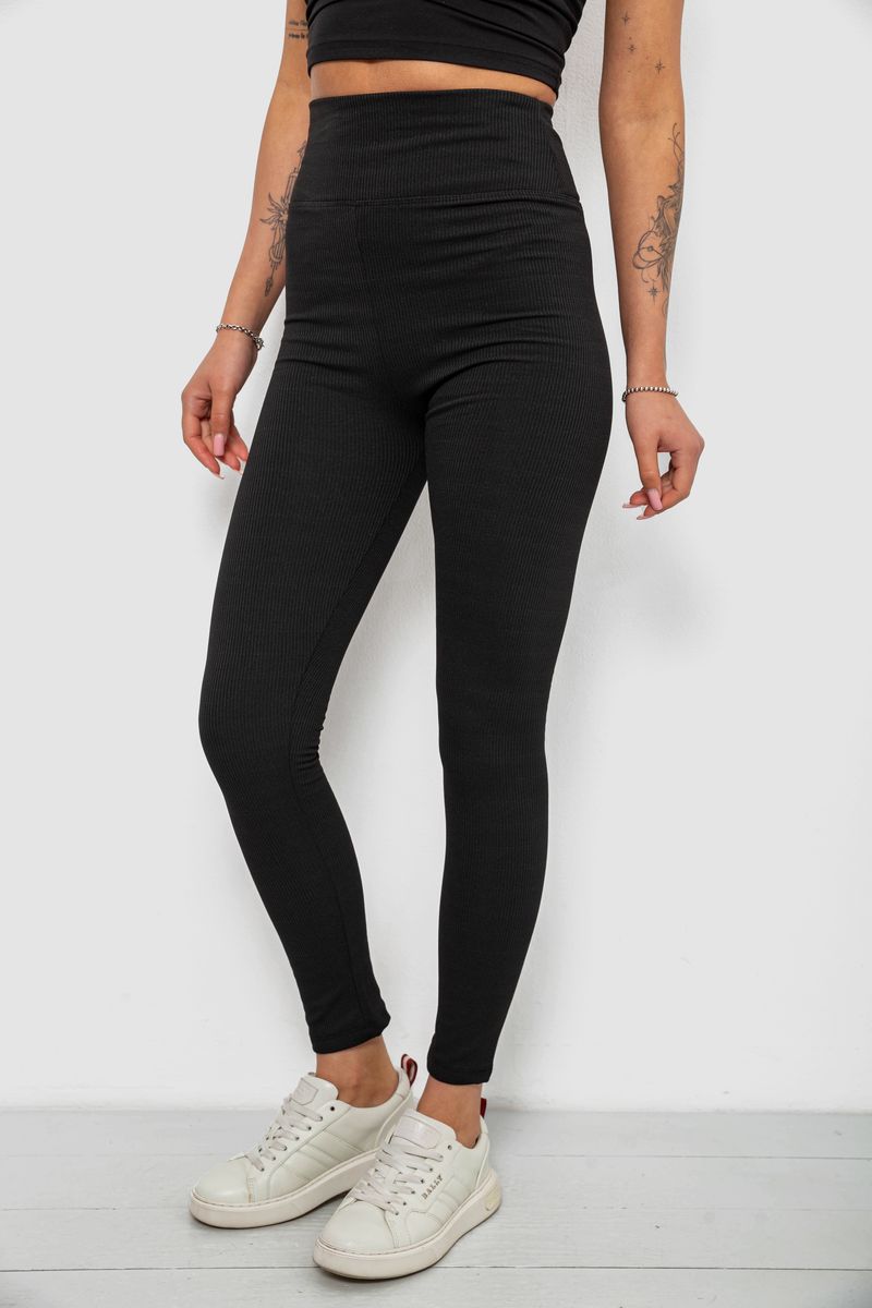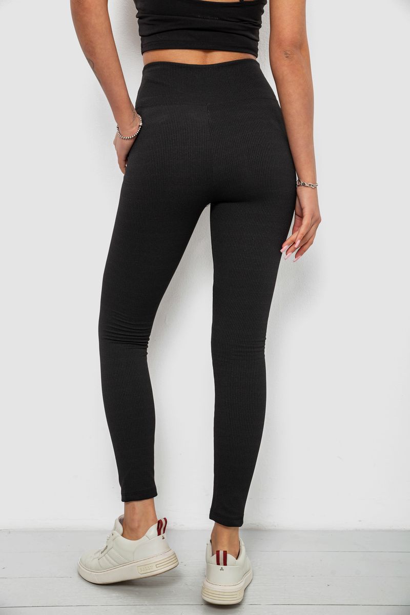 Лосины женские однотонные в рубчик, цвет черный, 214R0009
