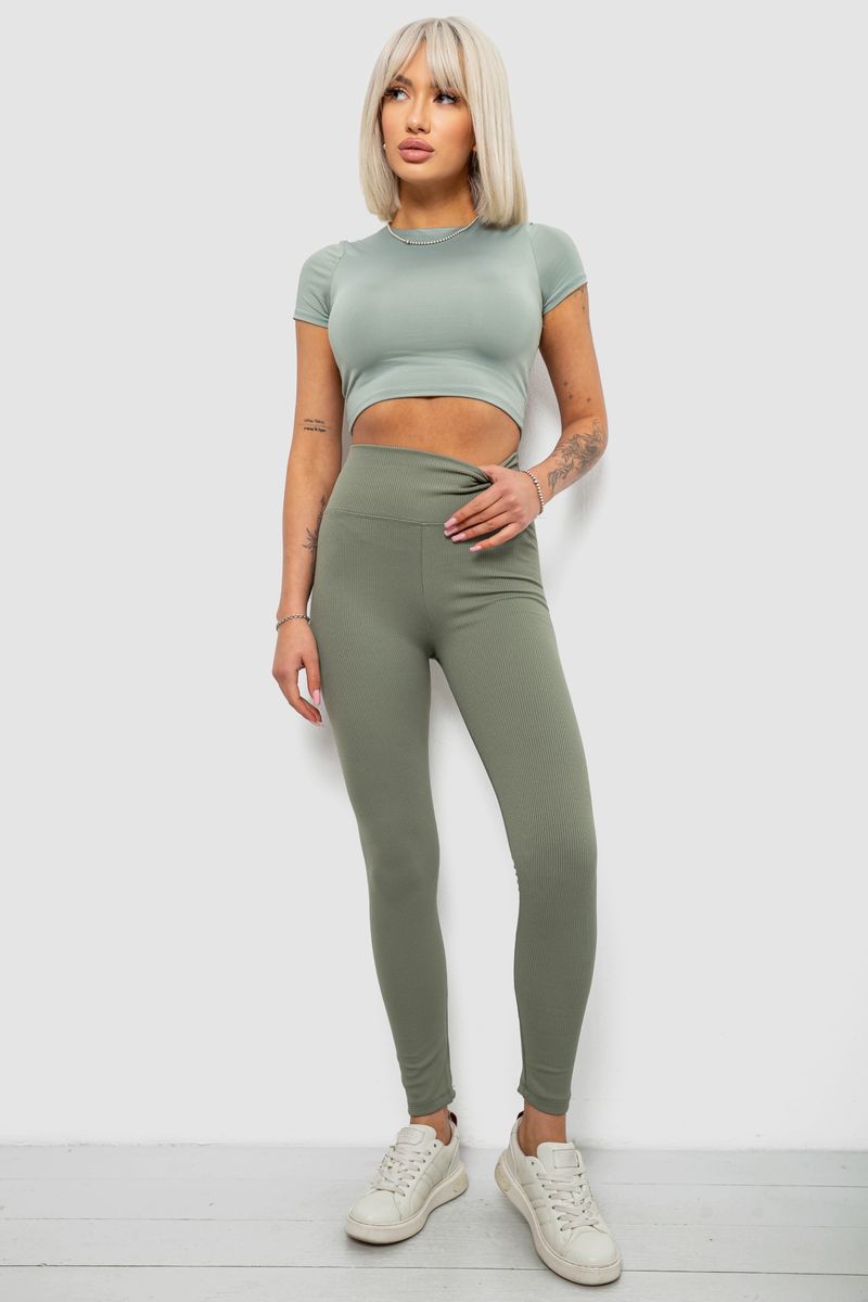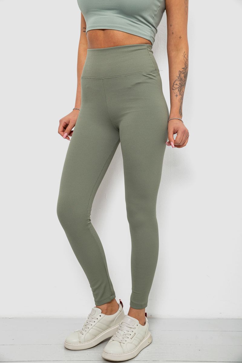 Лосины женские однотонные в рубчик, цвет оливковый, 214R0009