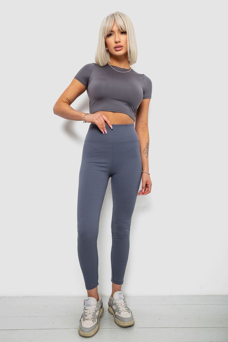 Лосины женские однотонные в рубчик, цвет серый, 214R0009