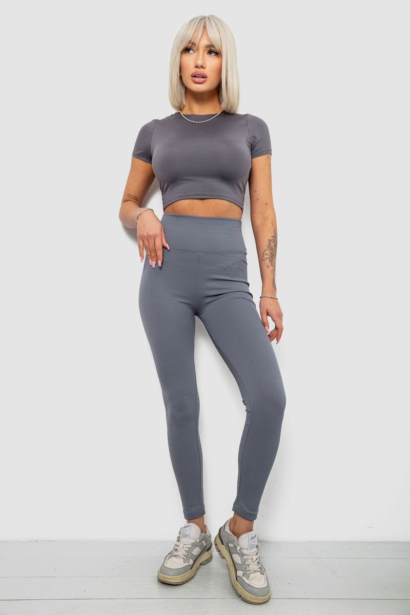 Лосины женские однотонные в рубчик, цвет серый, 214RU200