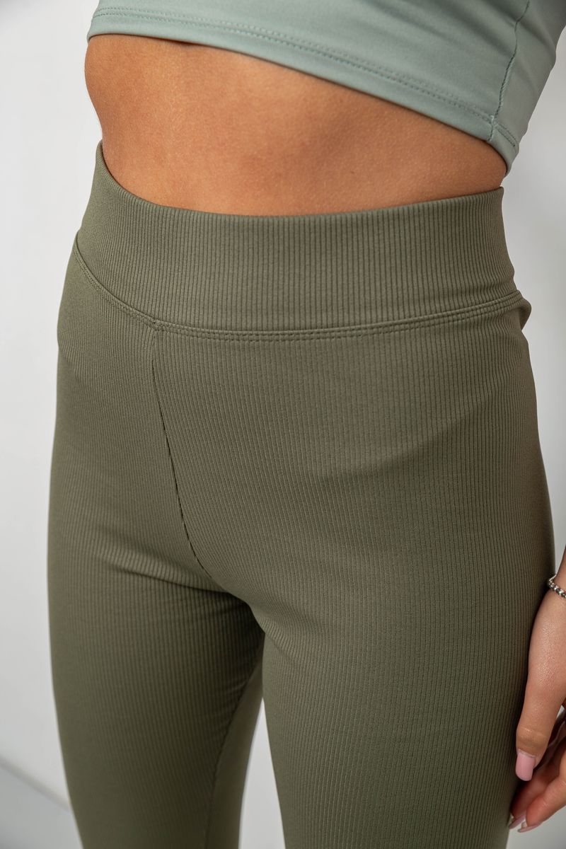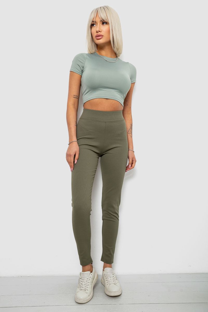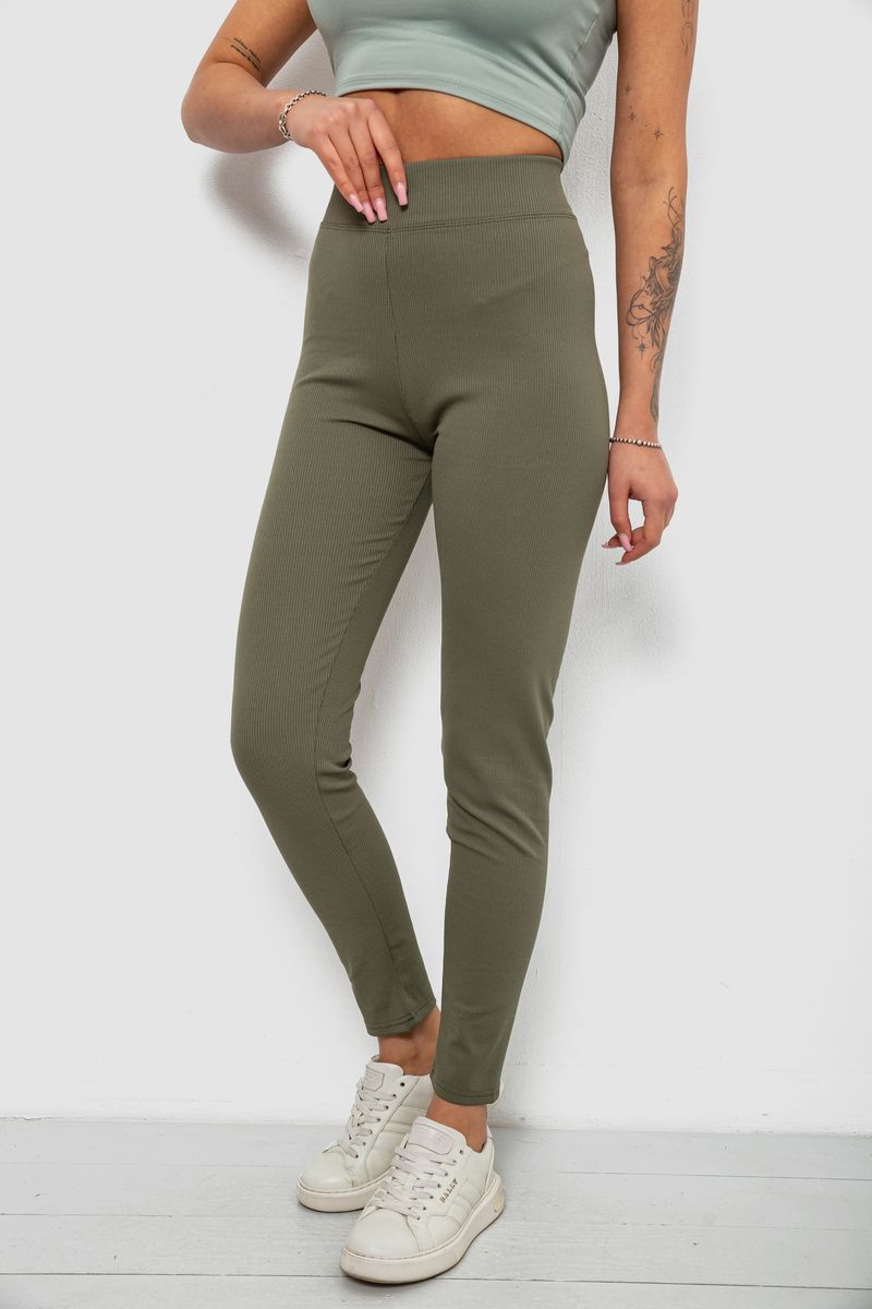 Лосины женские однотонные в рубчик на флисе, цвет оливковый, 214R325