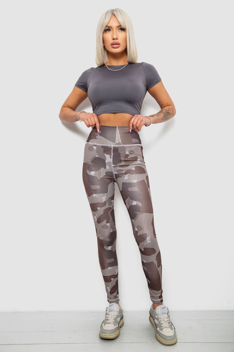 Лосины женские с принтом, цвет коричневый, 214R090