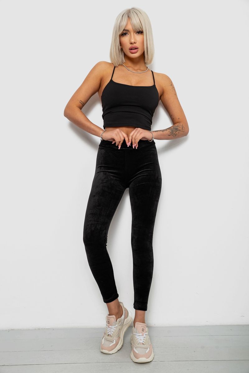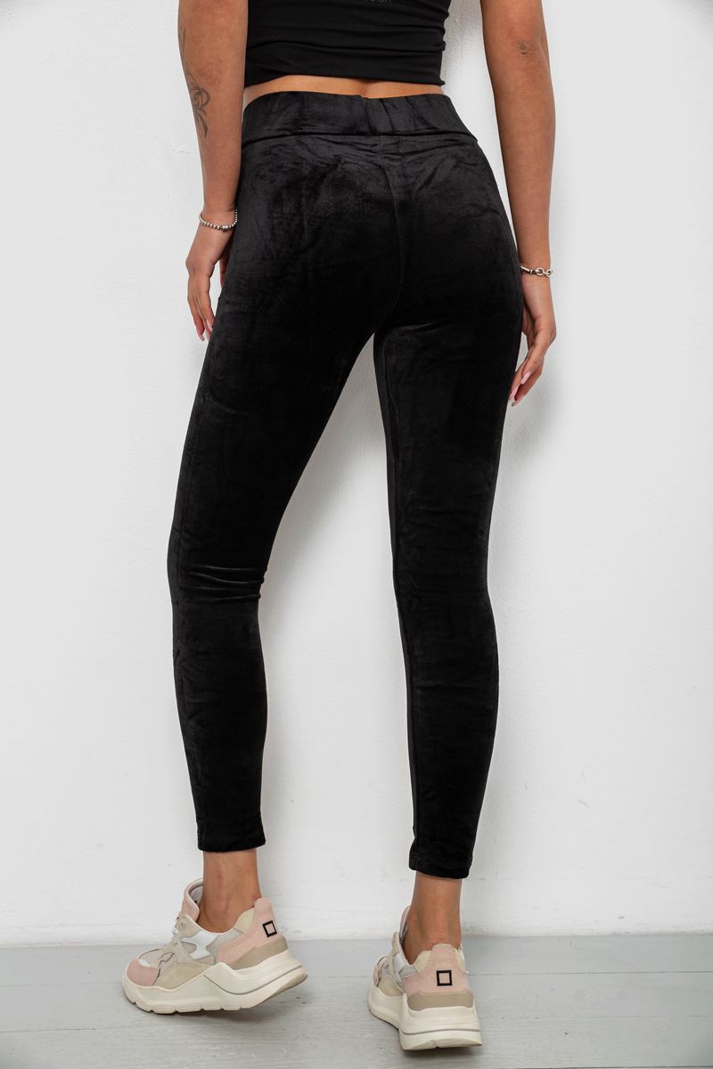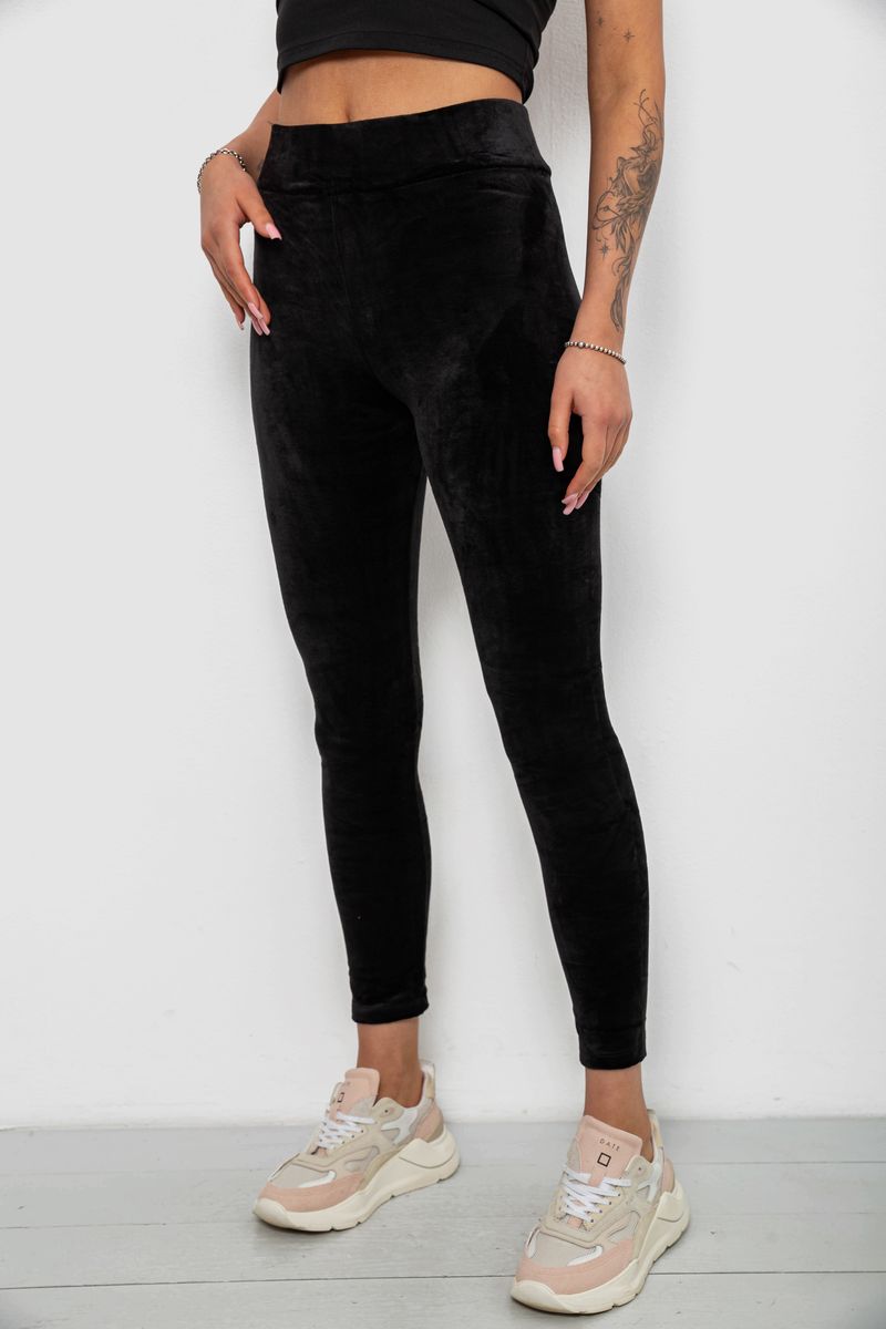 Лосины женские велюровые однотонные, цвет черный, 214R263