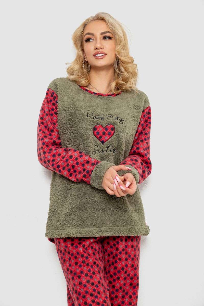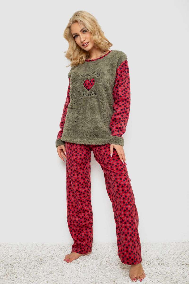 Пижама женская махра, цвет оливково-красный, 238R58435