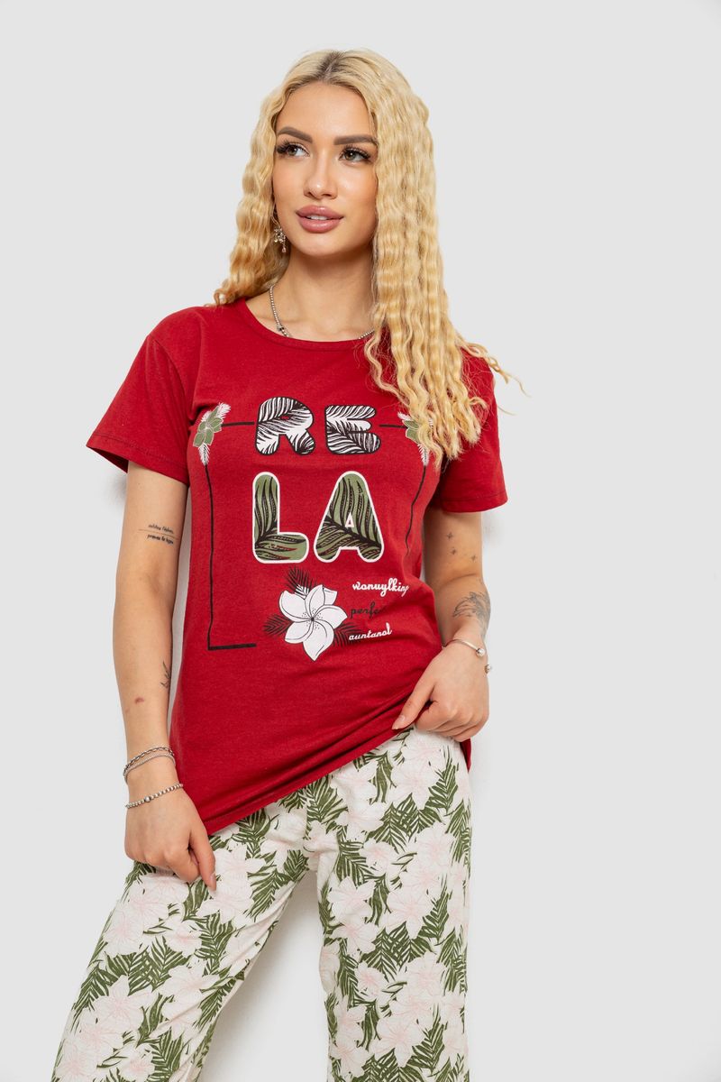 Пижама женская с принтом, цвет бордовый, 243R3755