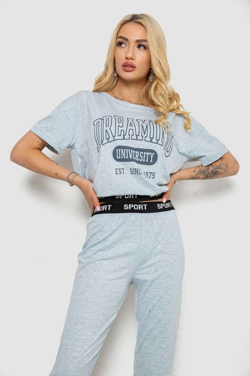 Пижама женская с принтом, цвет серый, 243R1488-015