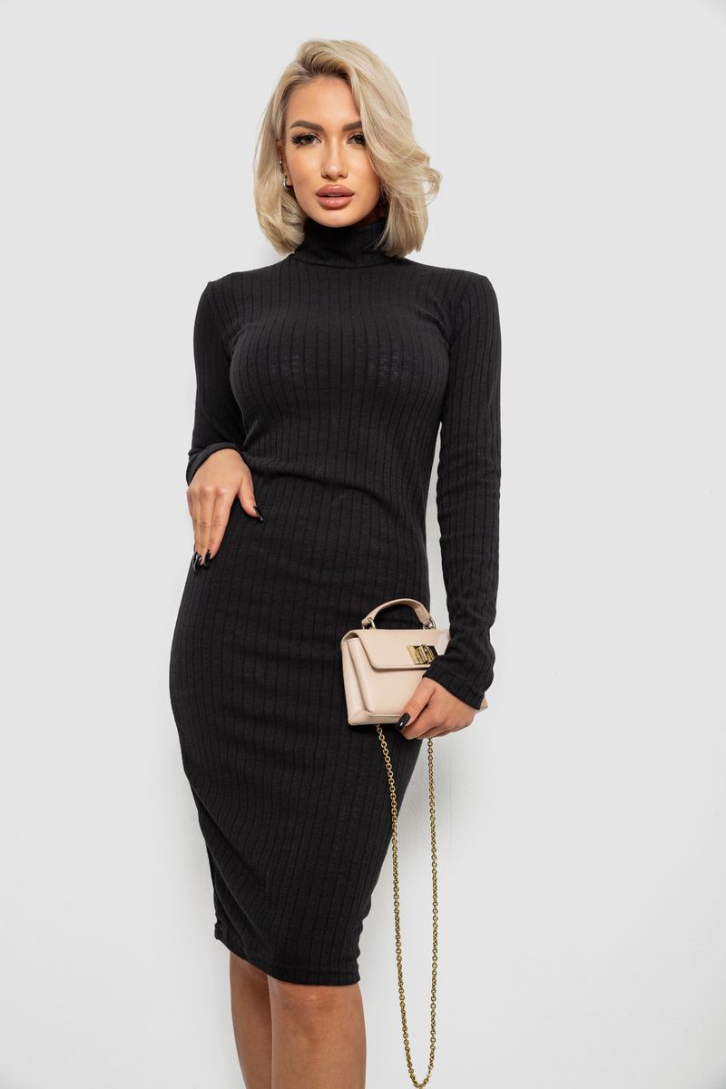 Платье однотонное в рубчик, цвет черный, 257R701-1