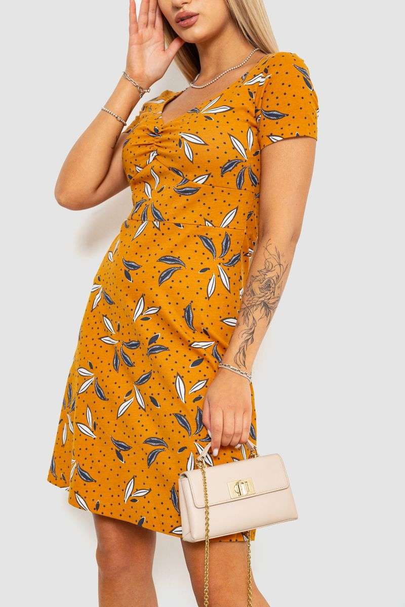 Платье с принтом повседневное, цвет коричневый, 244R283
