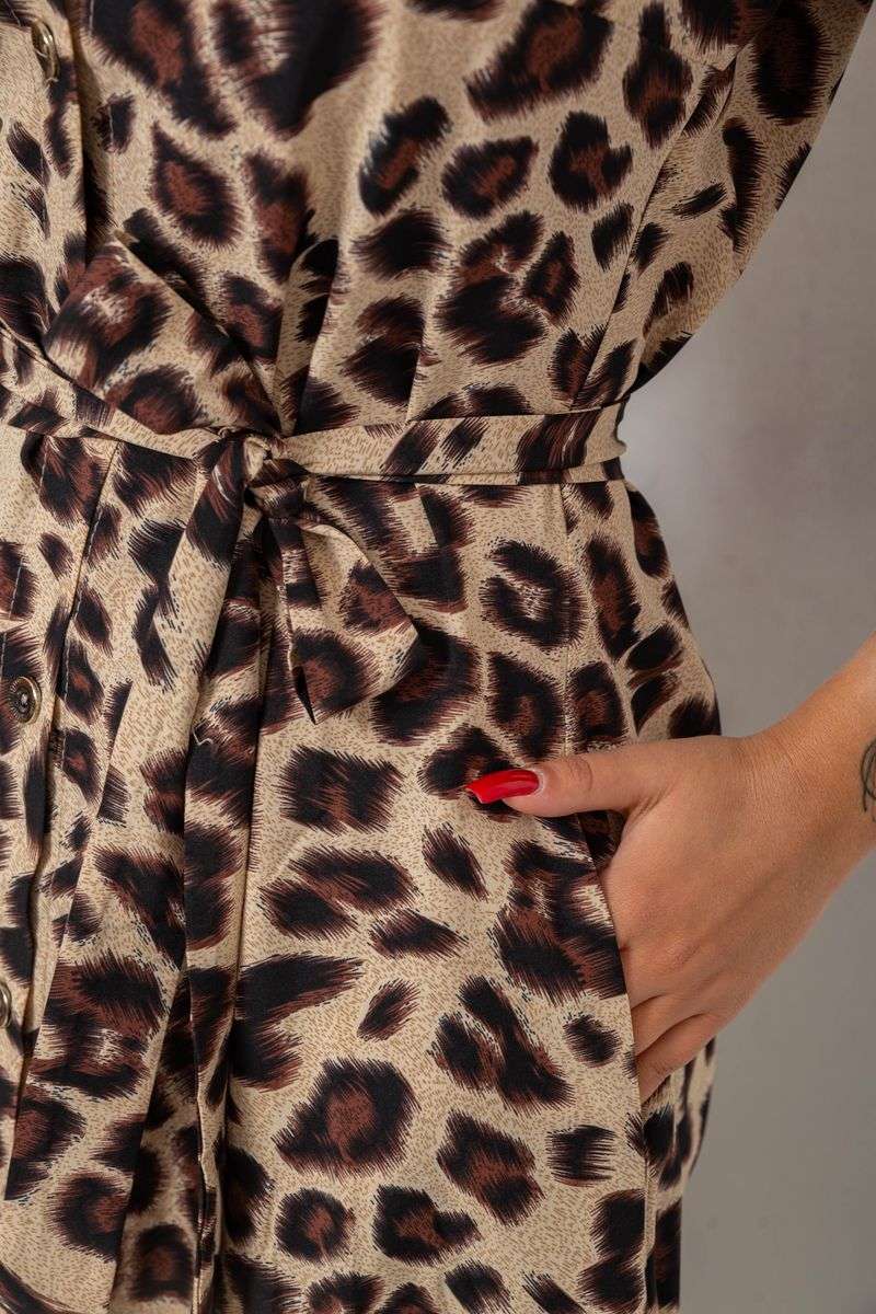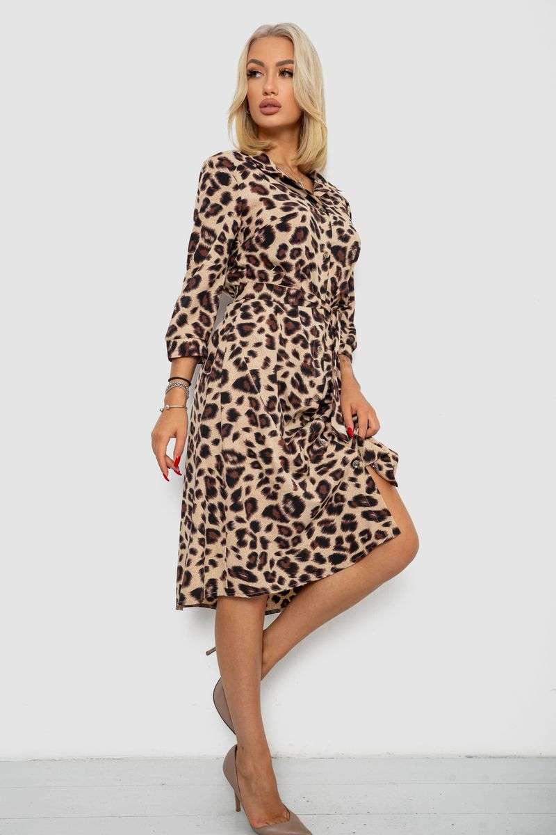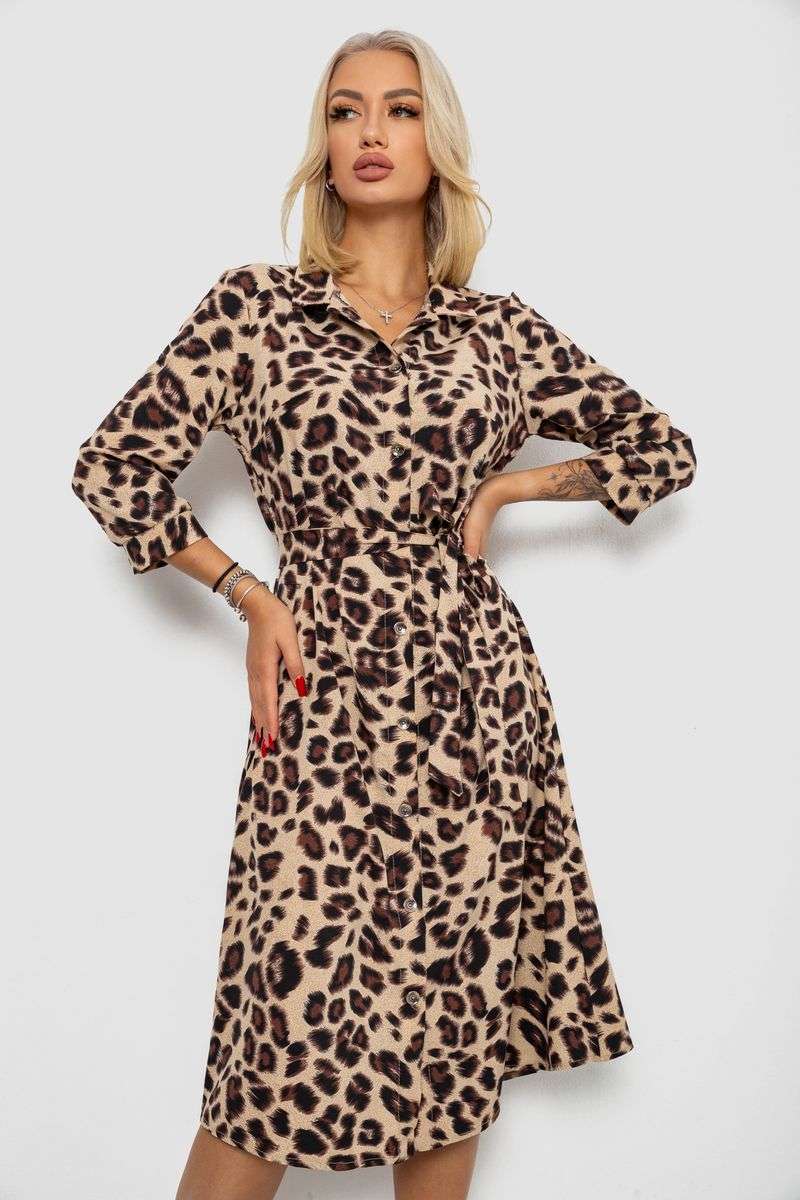 Платье софт на пуговицах с принтом, цвет бежево-коричневый, 230R117
