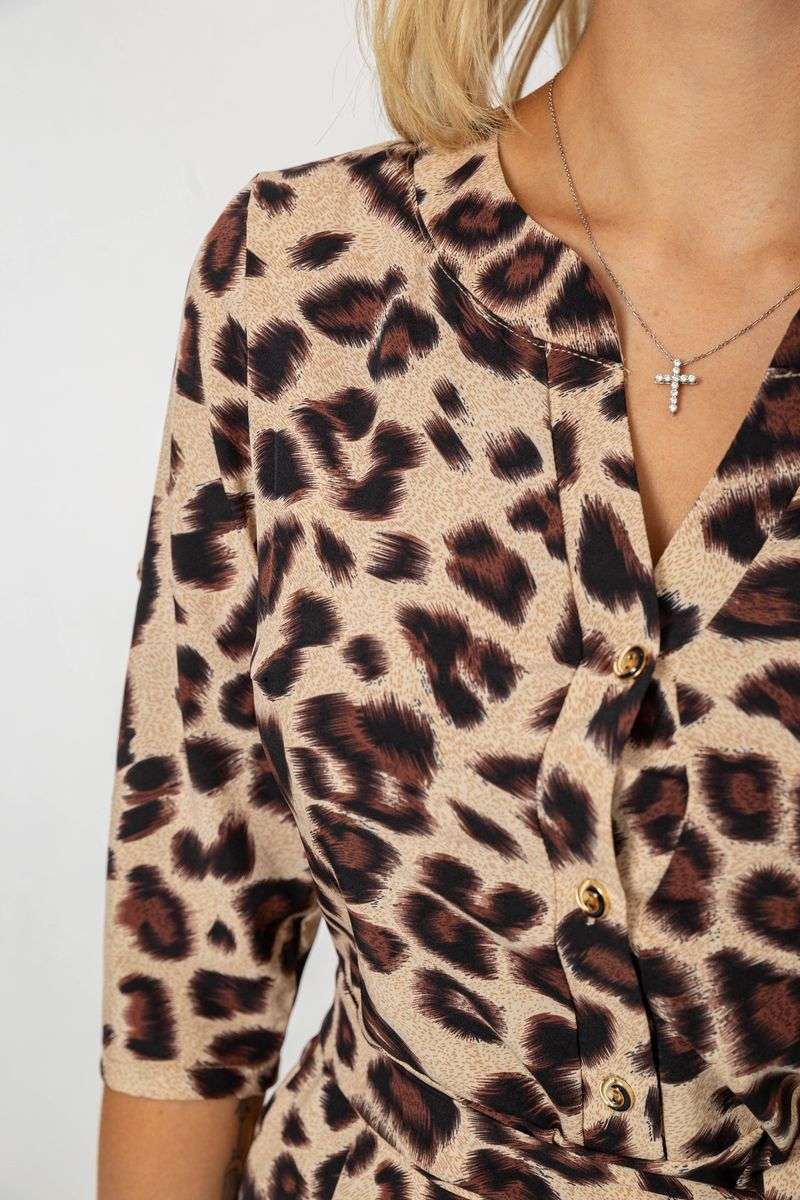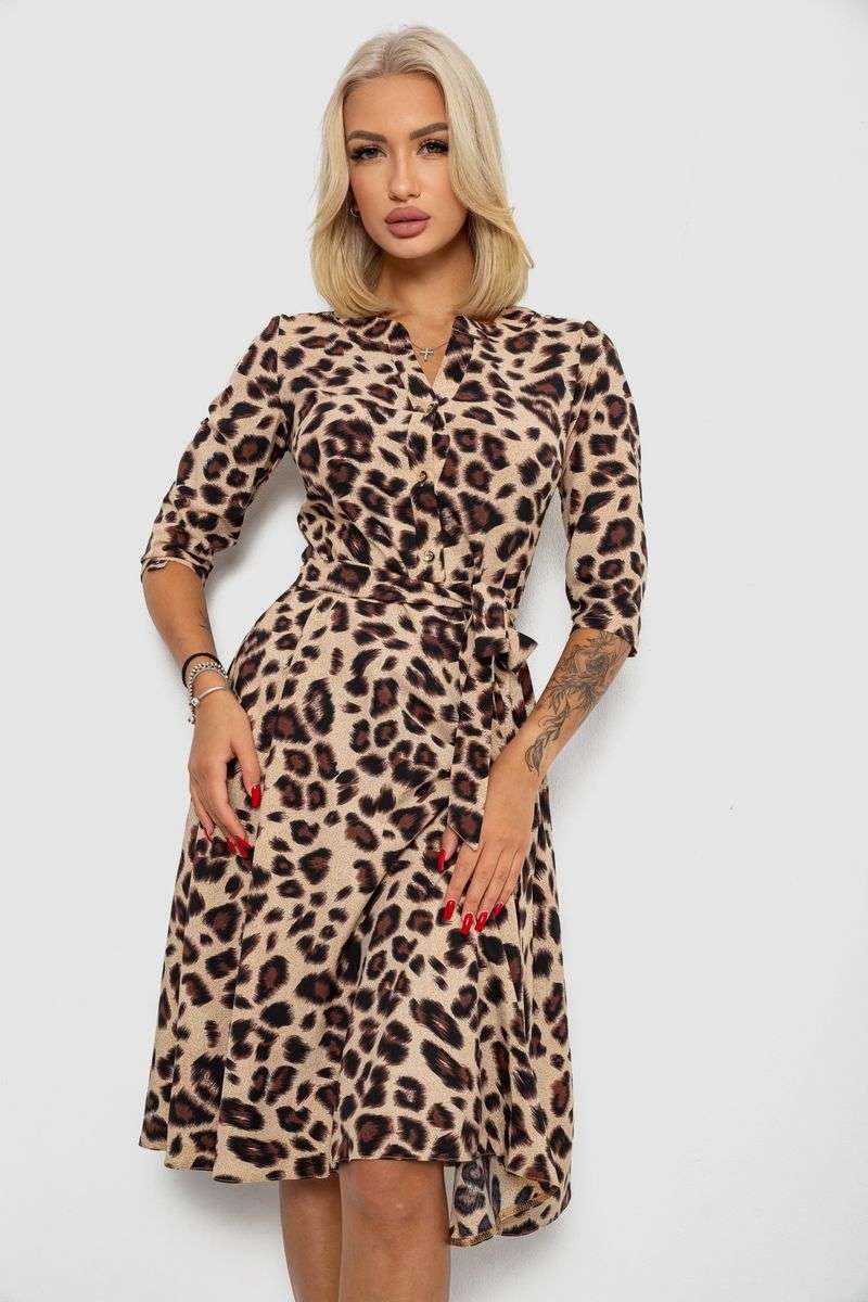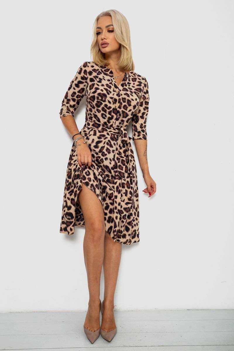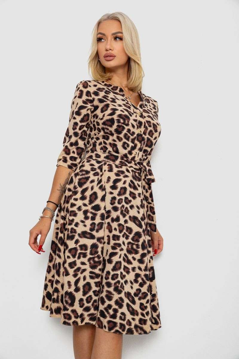 Платье софт с принтом, цвет бежево-коричневый, 230R1011-7