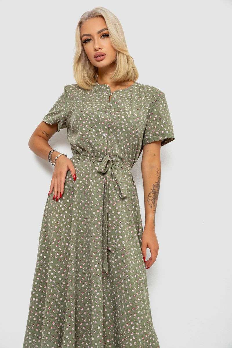 Платье софт с принтом, цвет оливковый, 230R1111