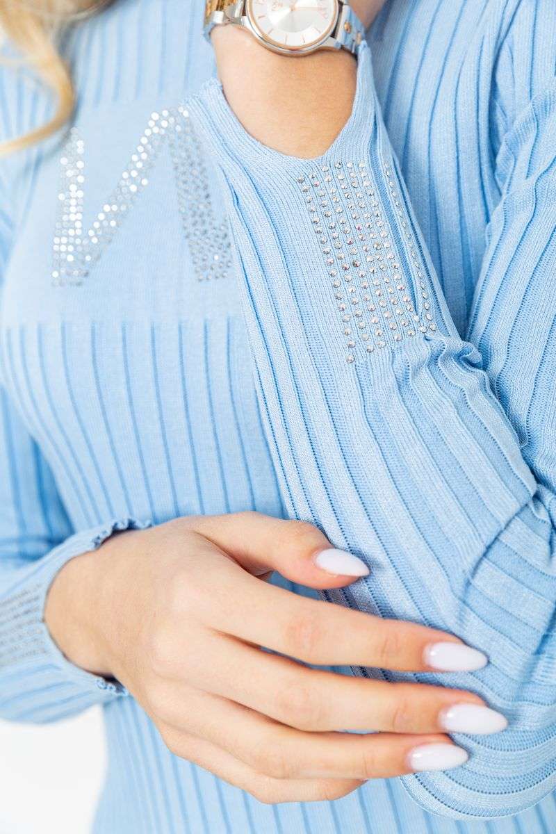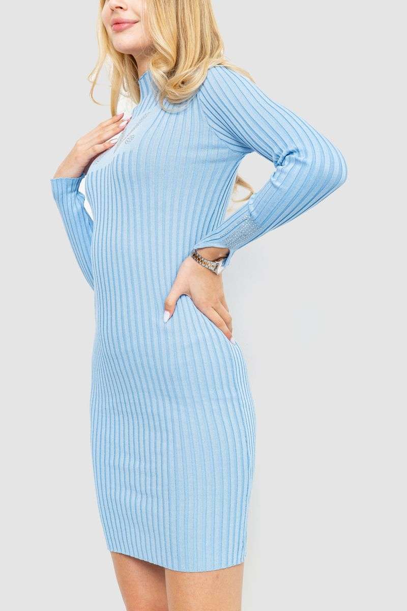 Платье вязаное в рубчик, цвет голубой, 204R173