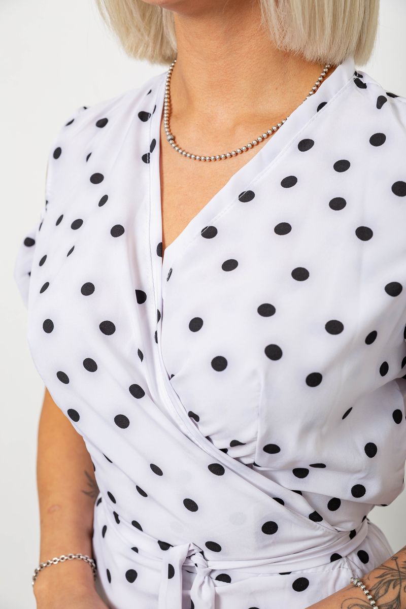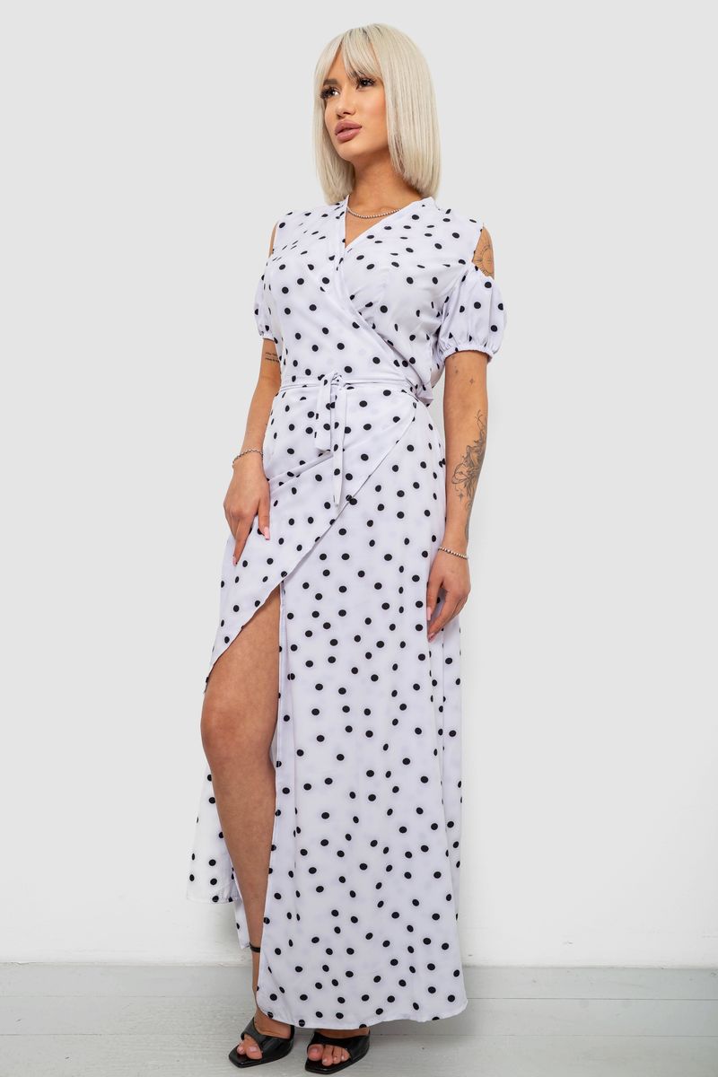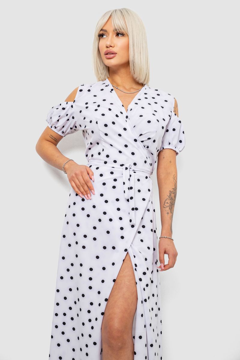 Платье женское на запах в горошек софт, цвет белый, 257R358