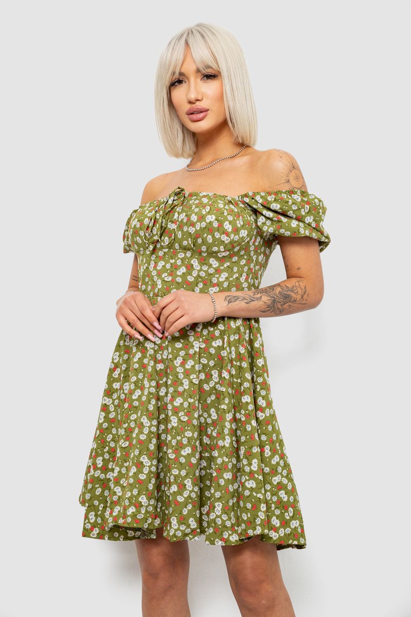 Платье женское с принтом софт, цвет оливковый, 257R811