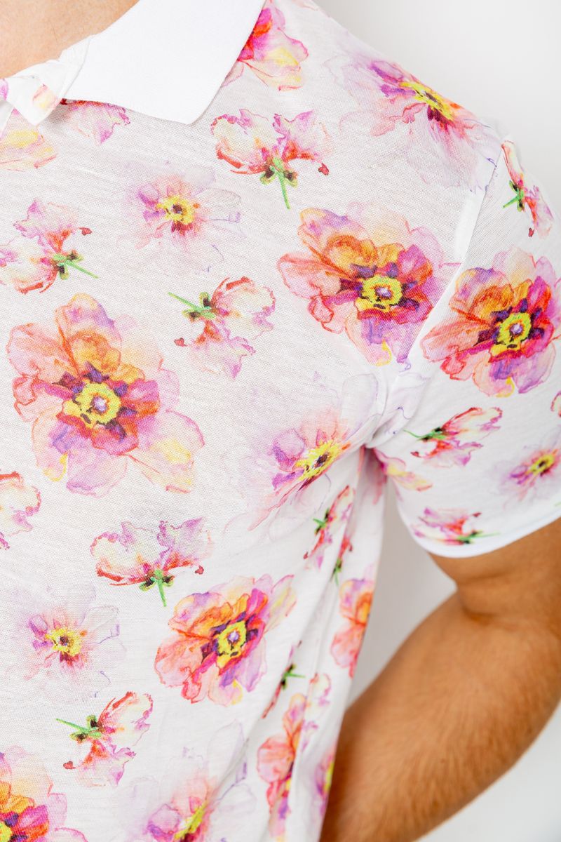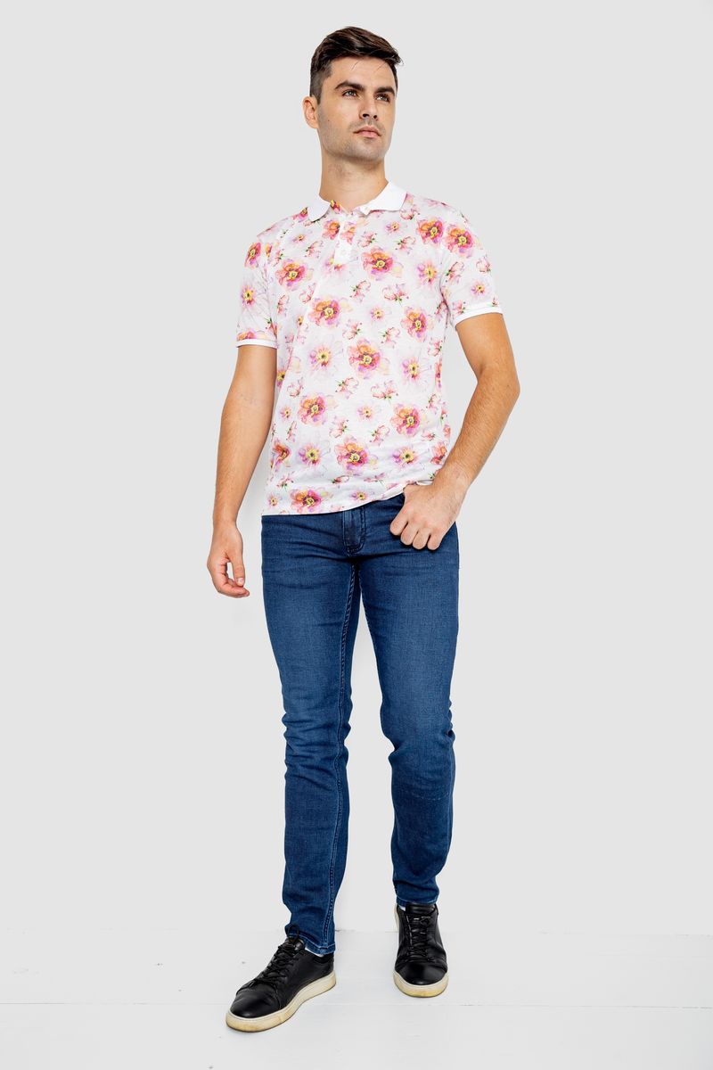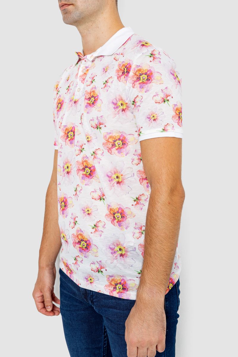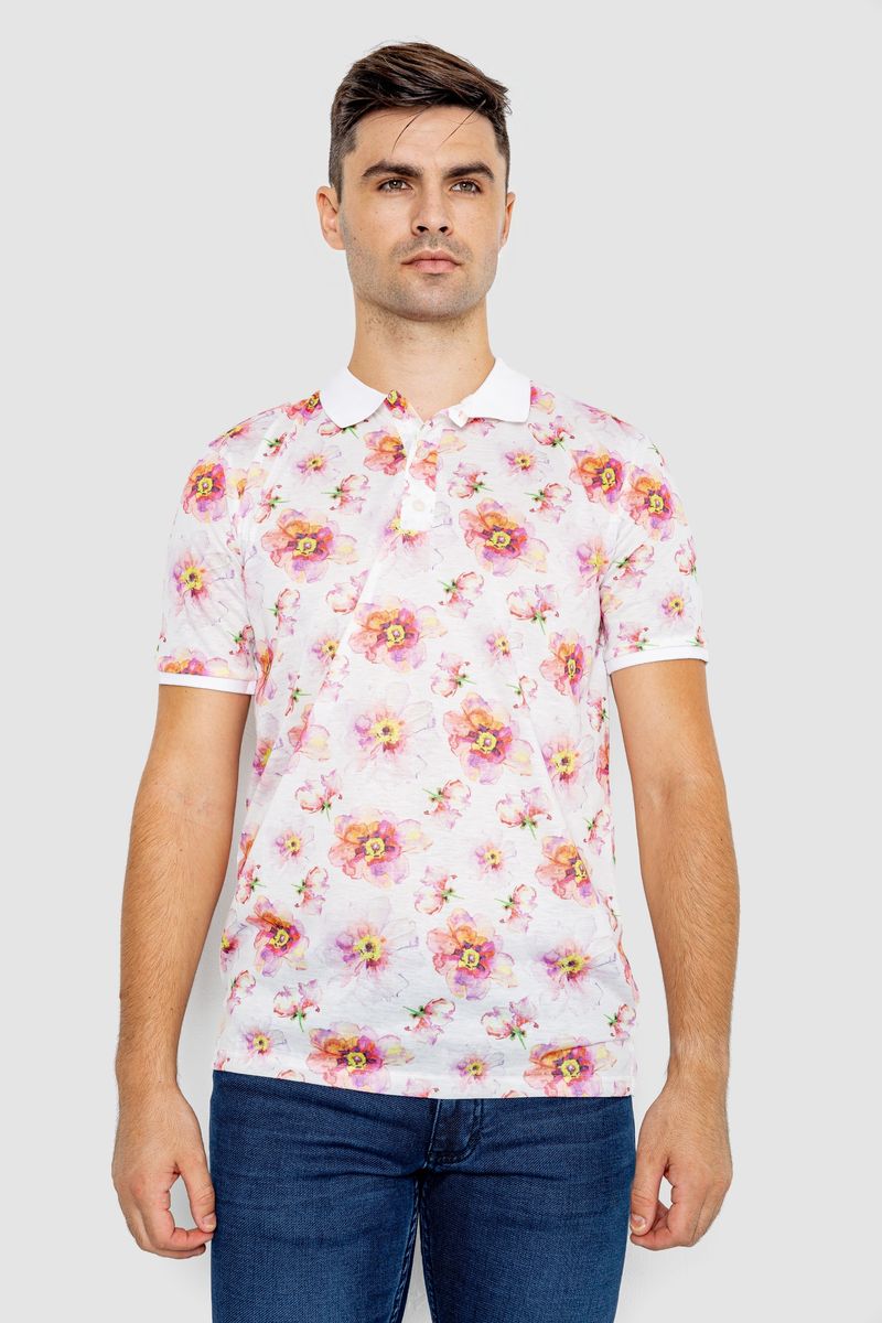 Поло мужское с принтом, цвет бело-розовый, 247R306