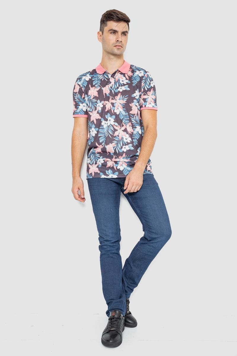Поло мужское с принтом, цвет серо-розовый, 247R315