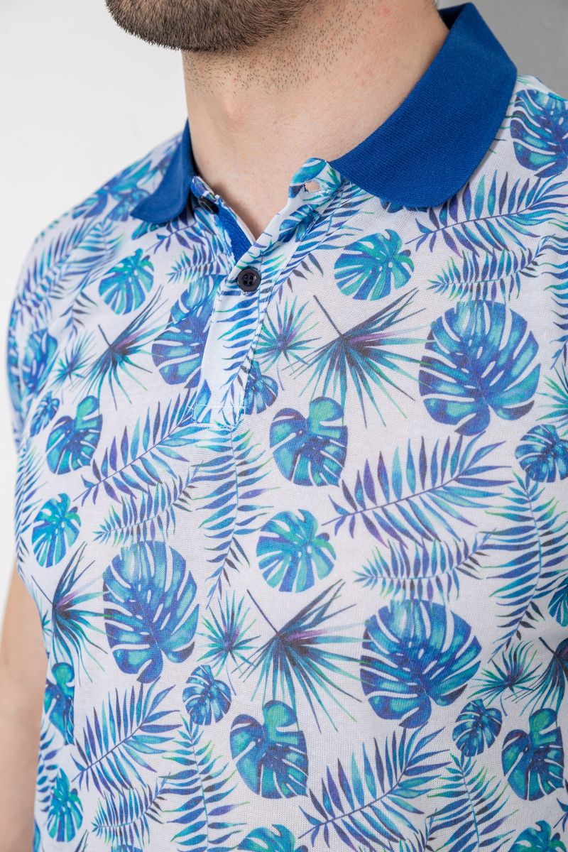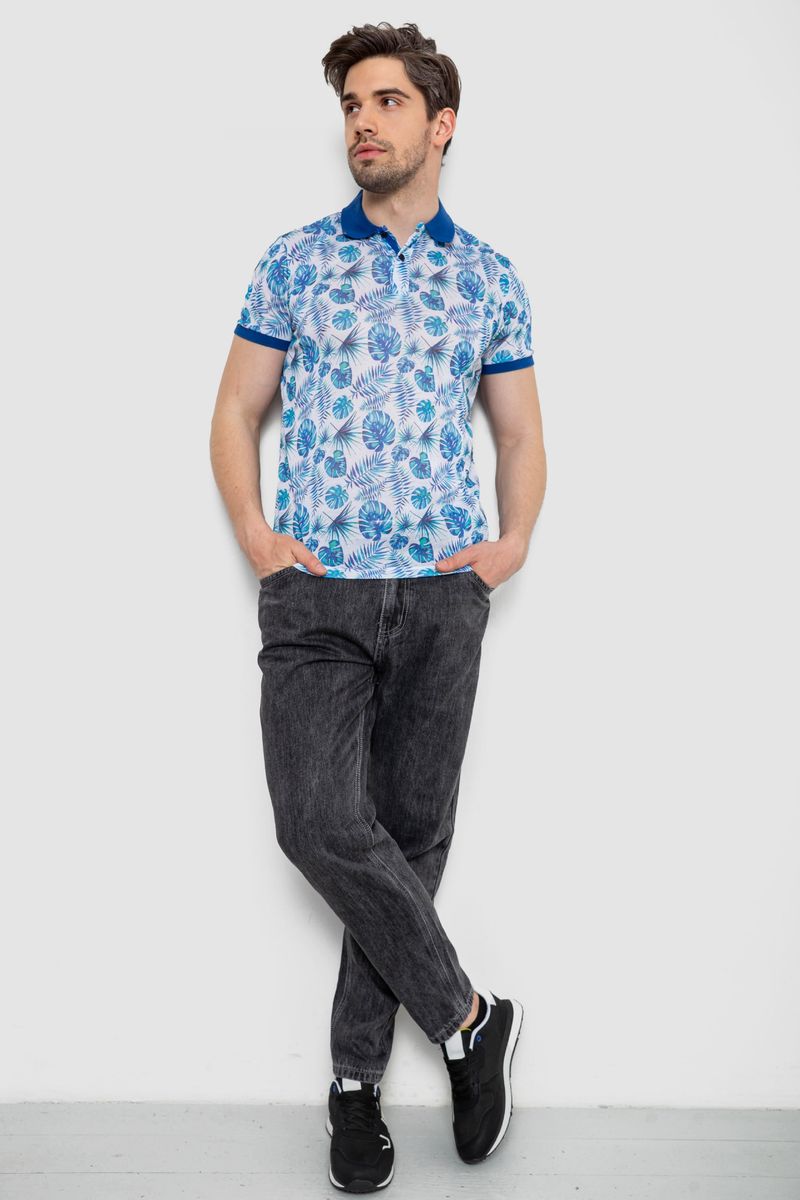 Поло мужское с принтом, цвет сине-молочный, 247R311