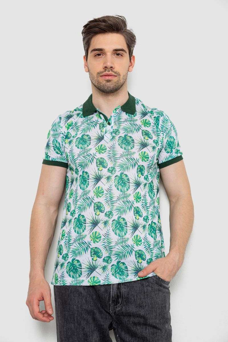 Поло мужское с принтом, цвет зелено-молочный, 247R311