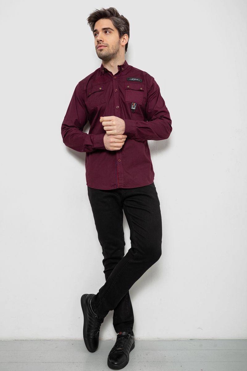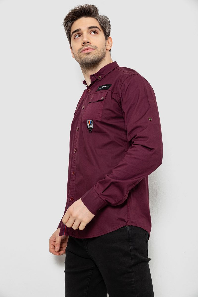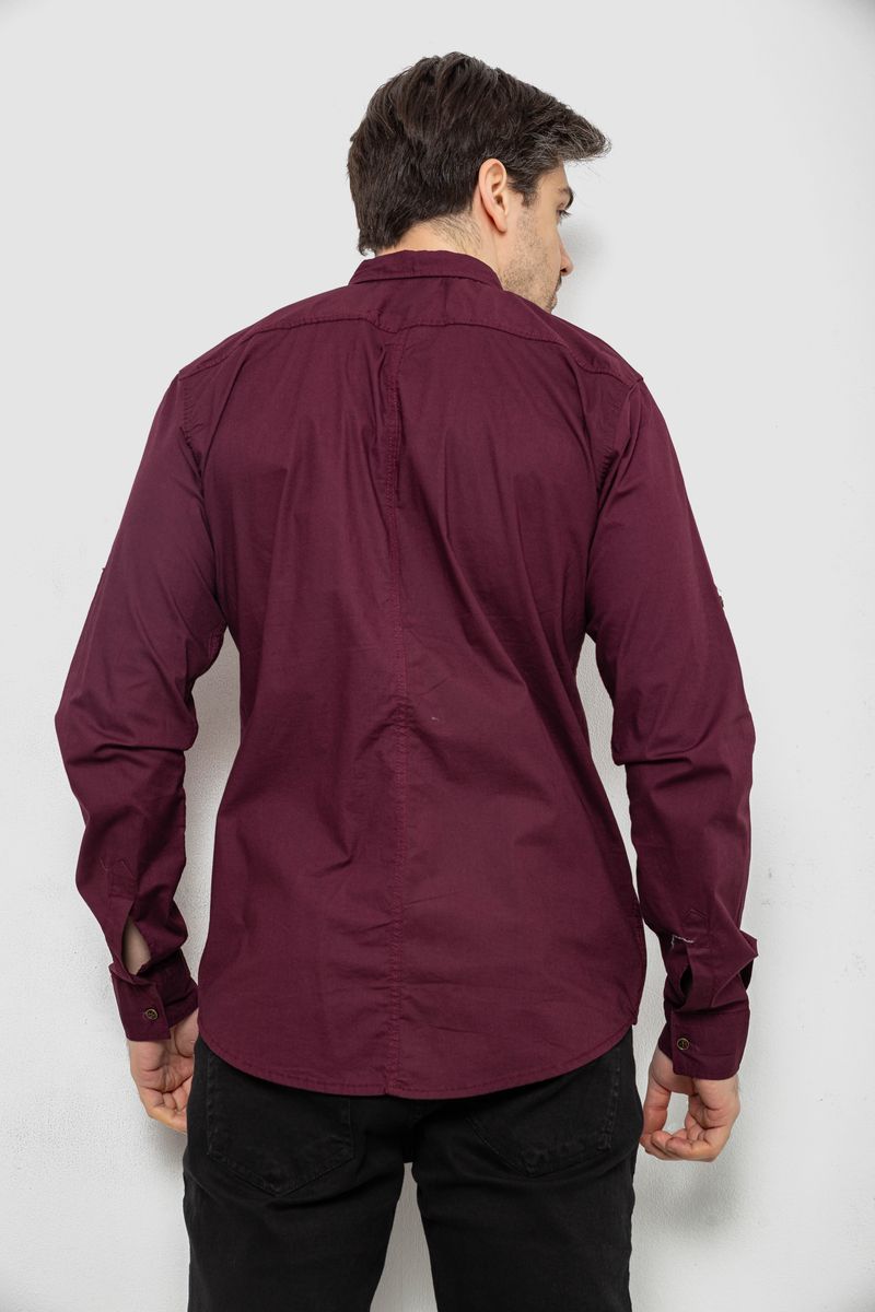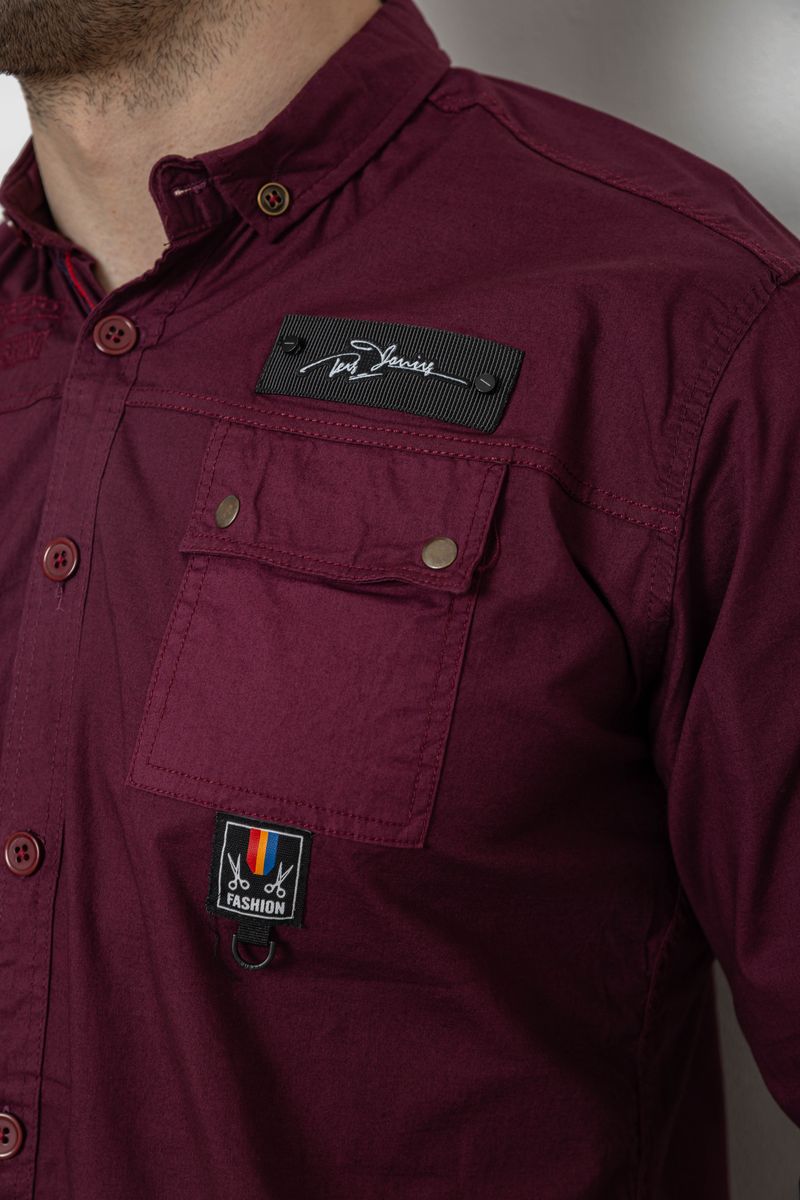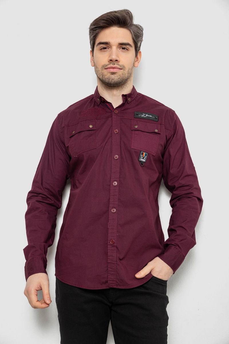 Рубашка мужская однотонная с принтом, цвет бордовый, 186R01