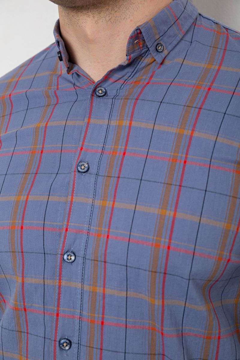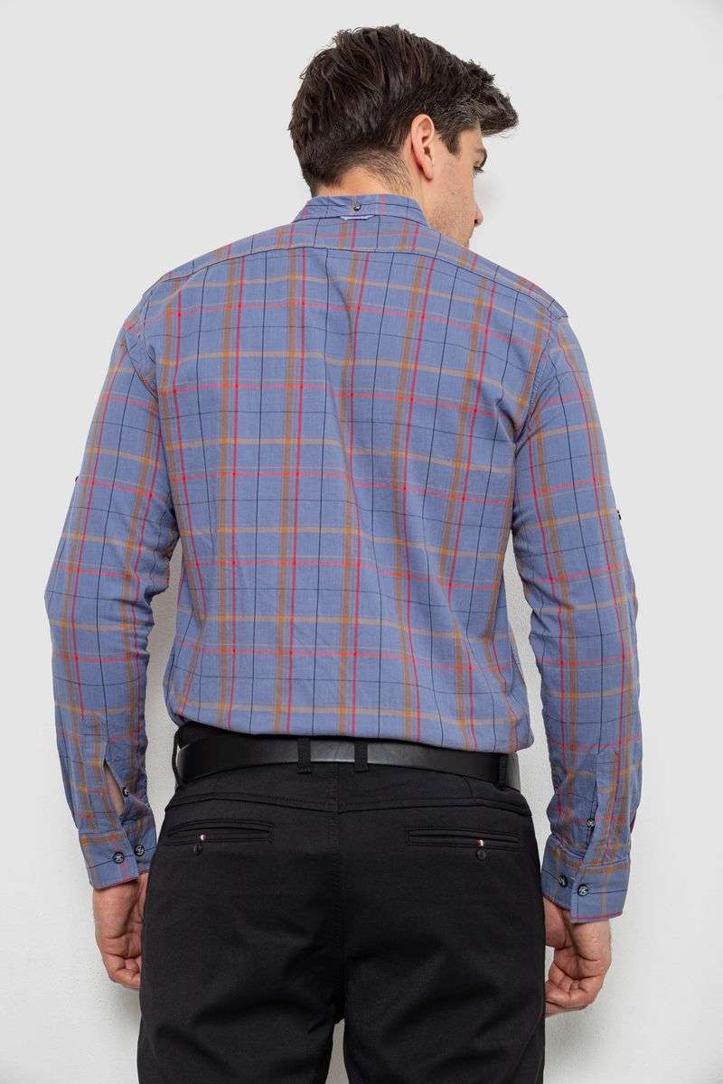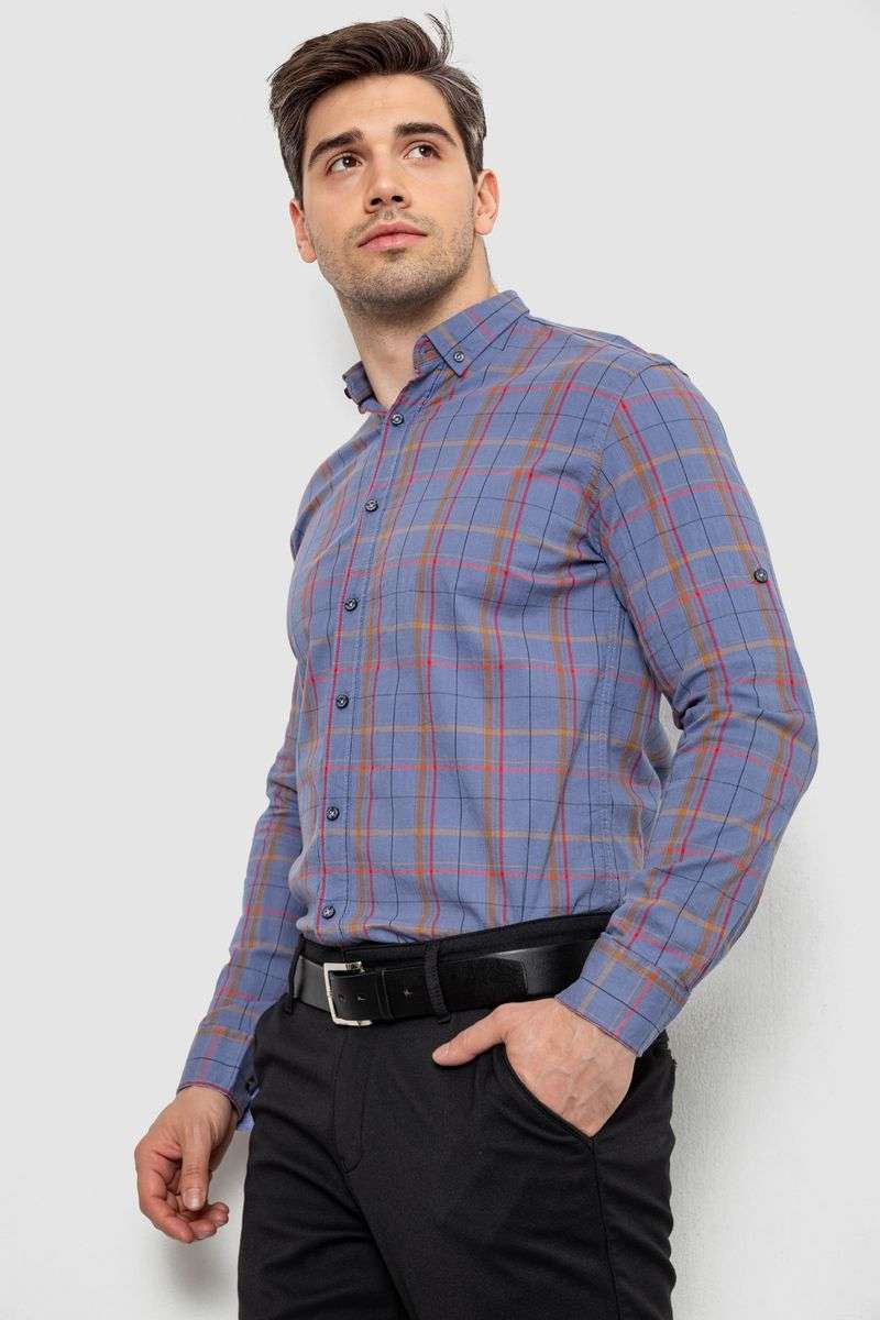 Рубашка мужская в клеточку, цвет джинс, 214R1255