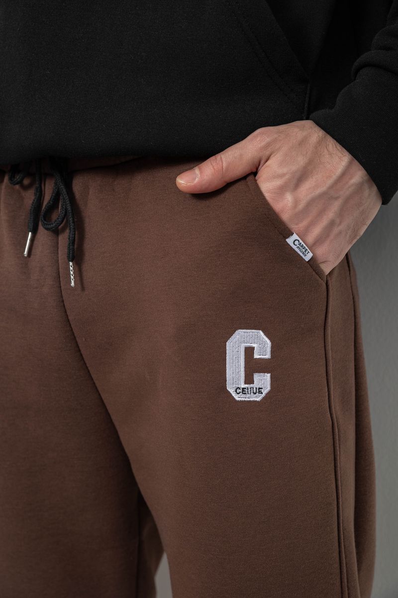 Спортивные штаны мужские на флисе, цвет коричневый, 129RA9995