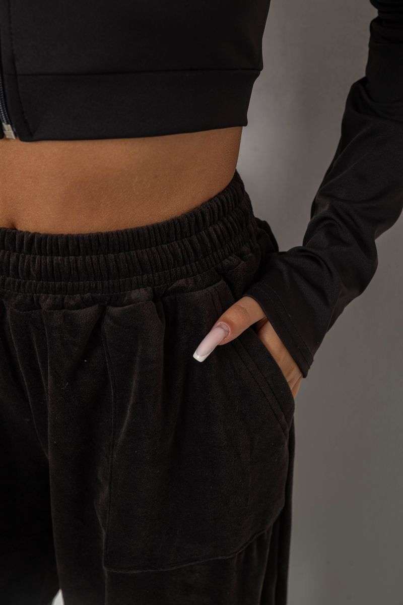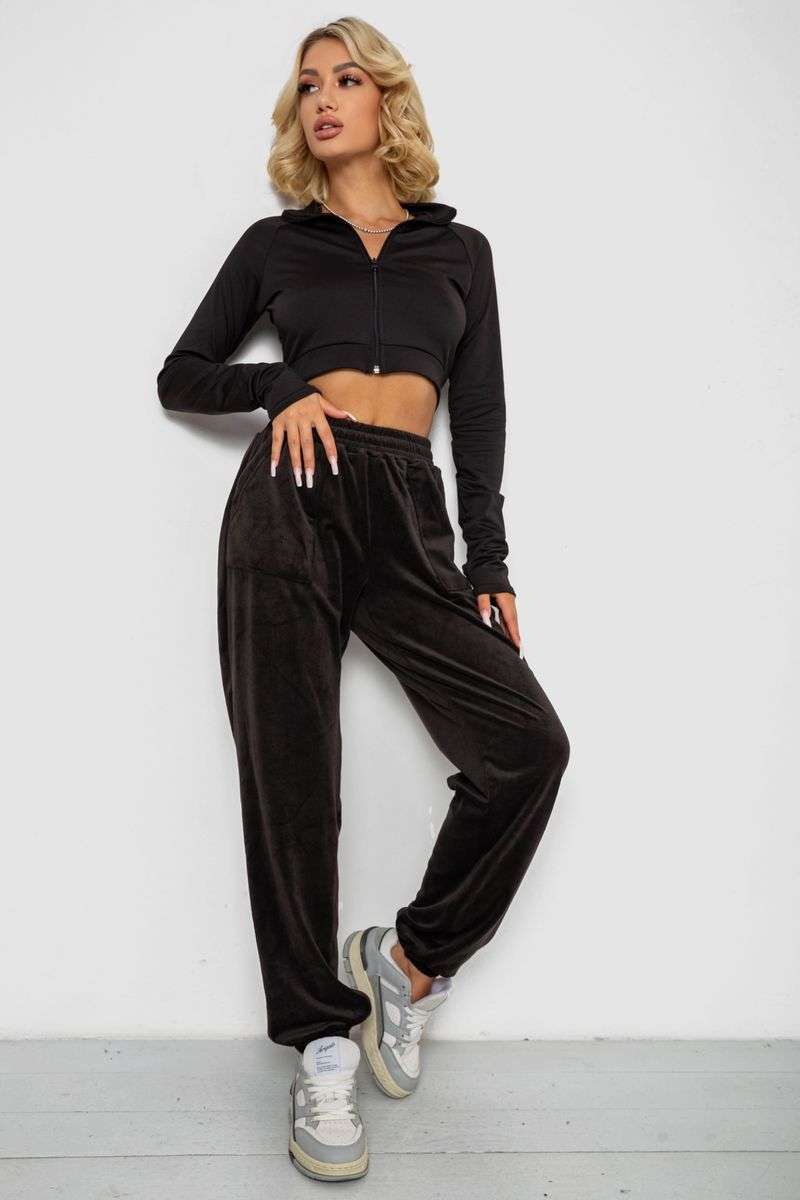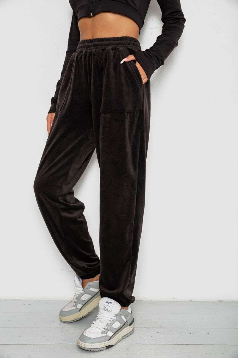 Спортивные штаны велюровые женские на флисе, цвет черный, 238R58647-3